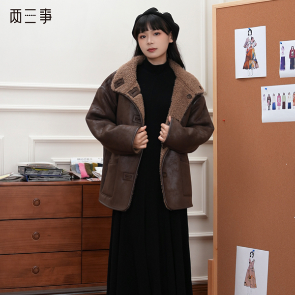 两三事行云如水国潮系列春季设计感小众气质衬衫复古印花宽松衬衣