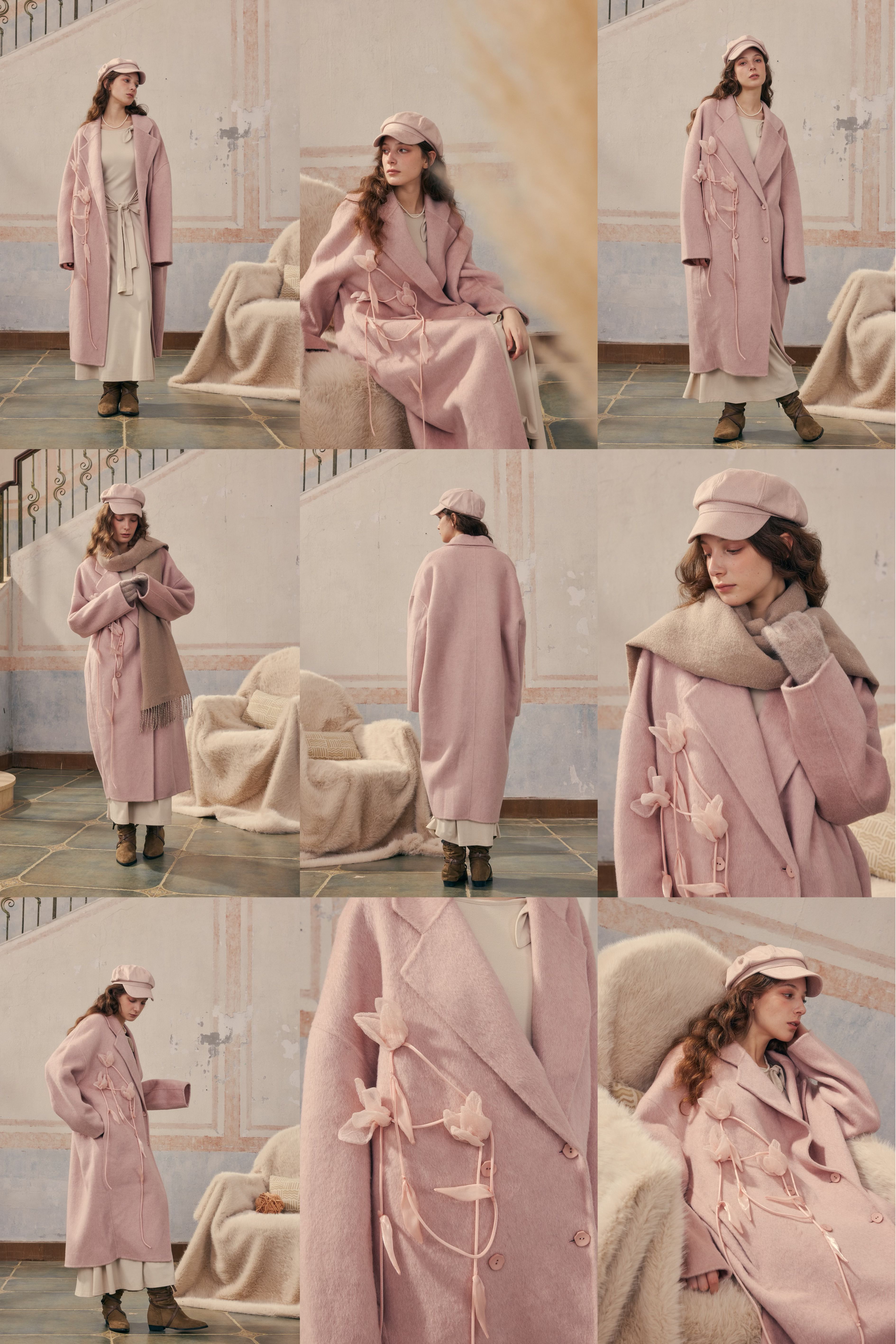 两三事梵高文艺春日序言2025春季新款蕾丝拼接荷叶边领绑带上衣女S25CLS342