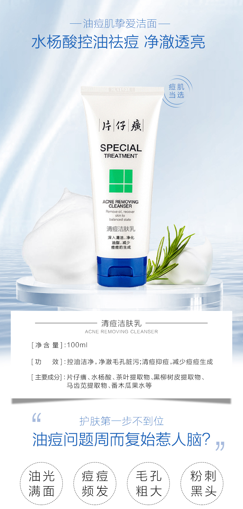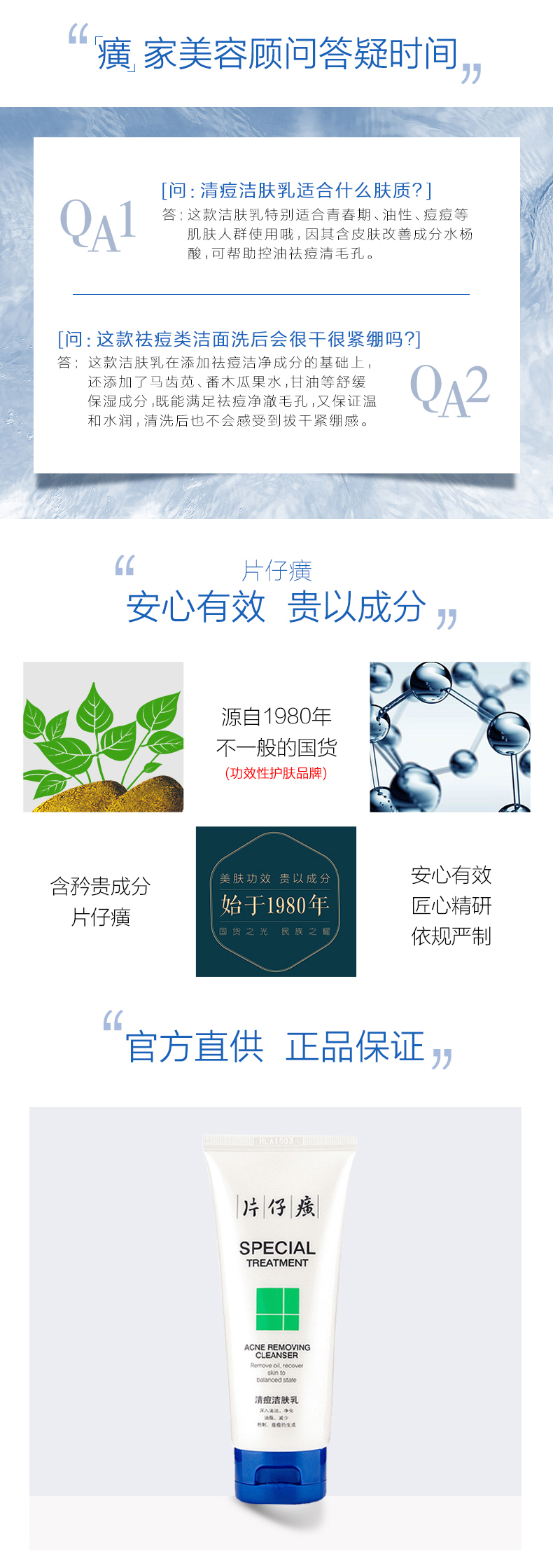 片仔癀牌清痘洁肤乳祛痘洗面奶女清洁洁面洗后不紧绷舒适洁面
