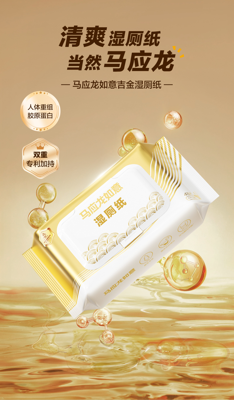 【新品上市】马应龙吉金湿厕纸48抽清洁私处胶原蛋白湿巾男女擦屁股专用清爽湿手纸