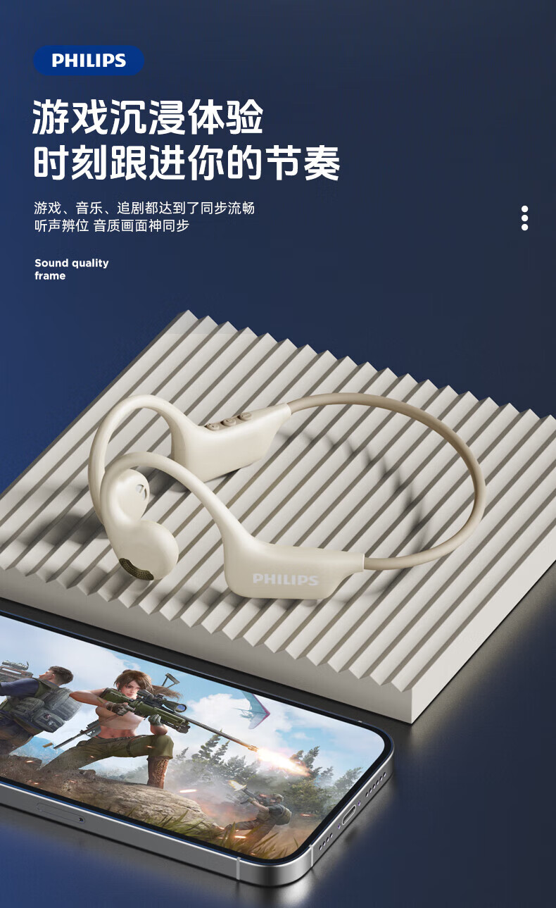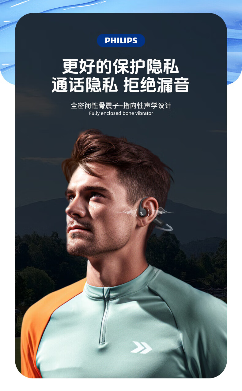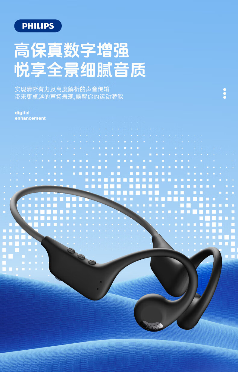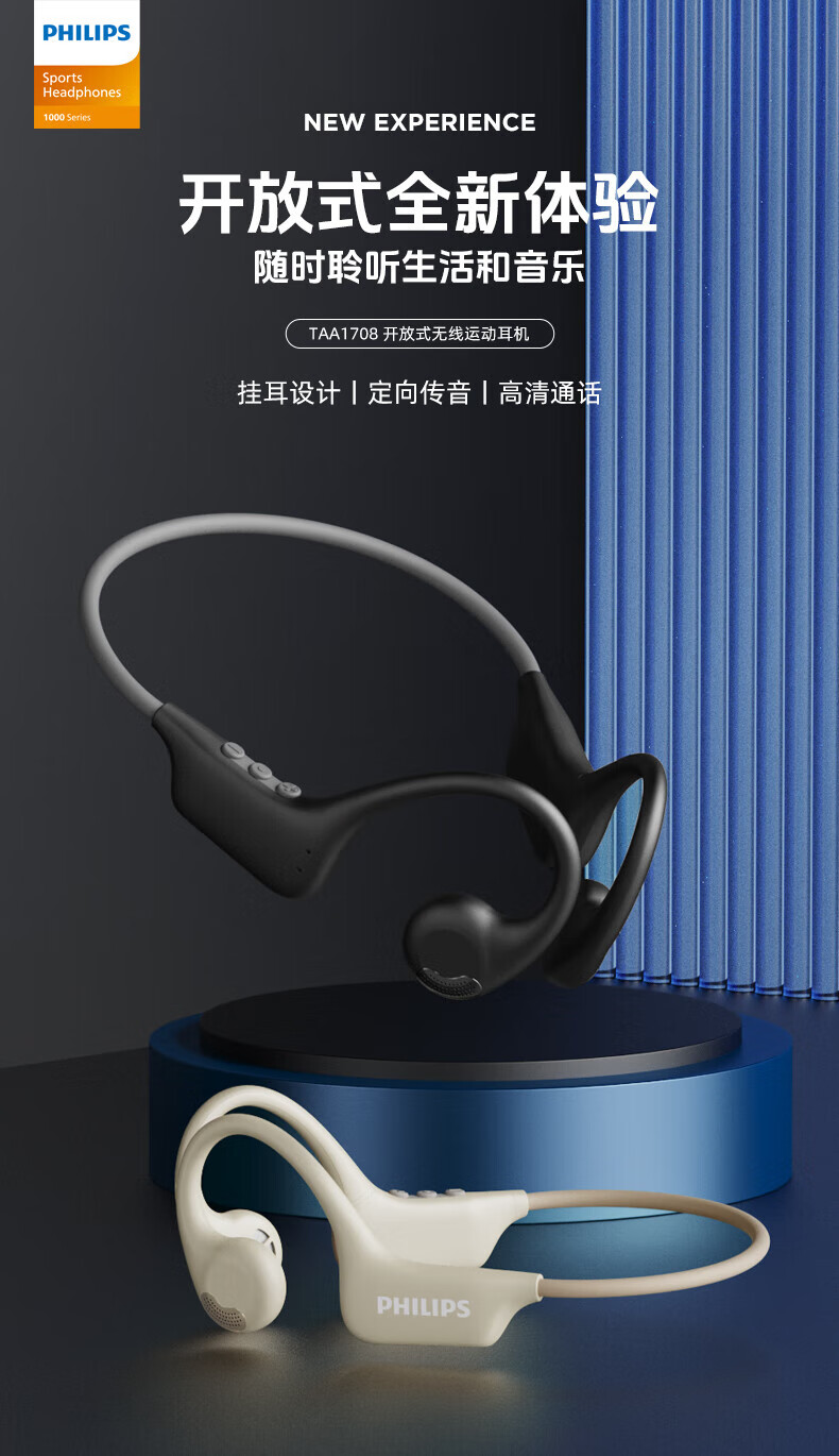 【自营】飞利浦(PHILIPS)骨传导概念挂耳式真无线开放式不入耳夹式运动跑步蓝牙耳机TAA1708