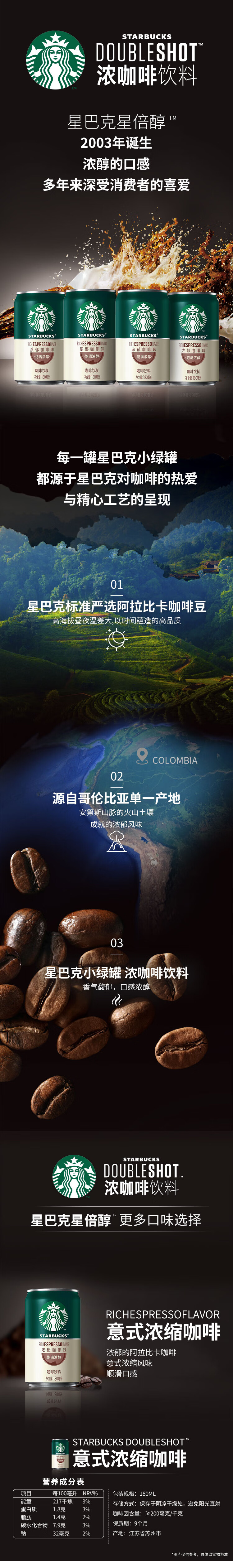 【自营】星巴克(Starbucks)星倍醇 即饮咖啡 意式浓缩 罐装浓咖啡饮料