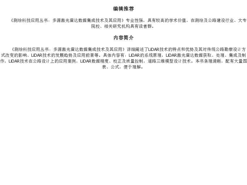 《测绘科技应用丛书:多源激光雷达数据集成技术及其应用》(王国锋,许振辉)