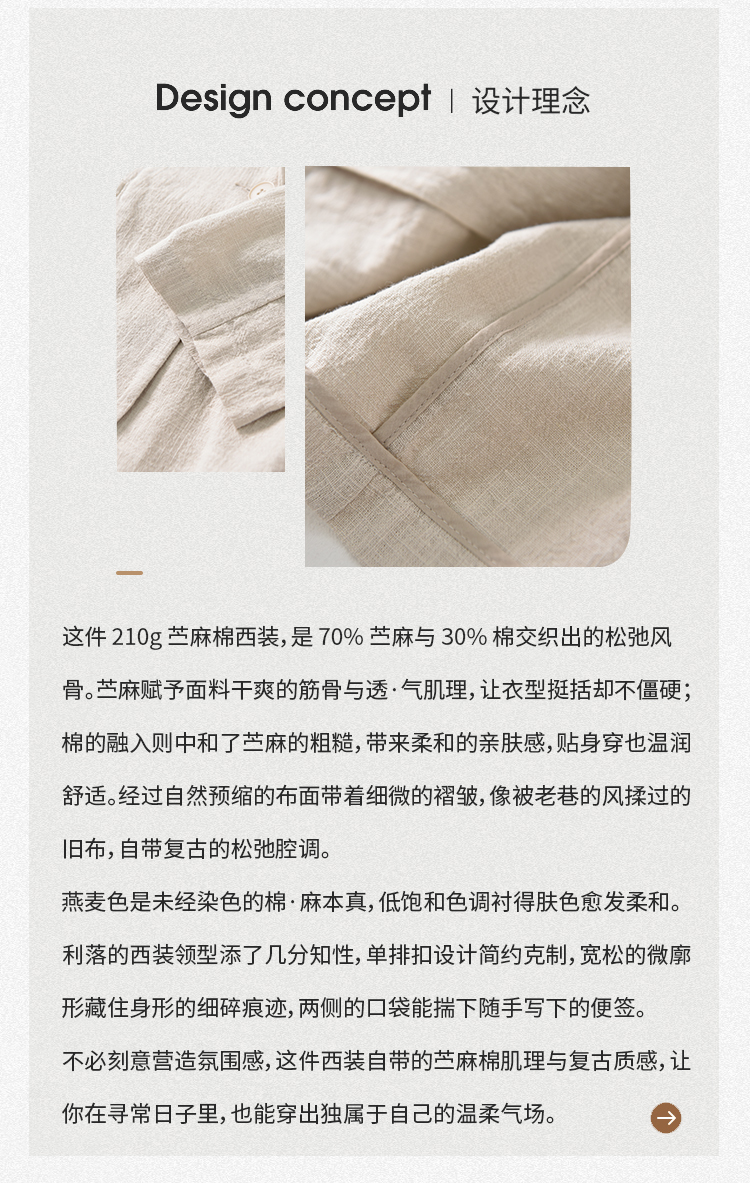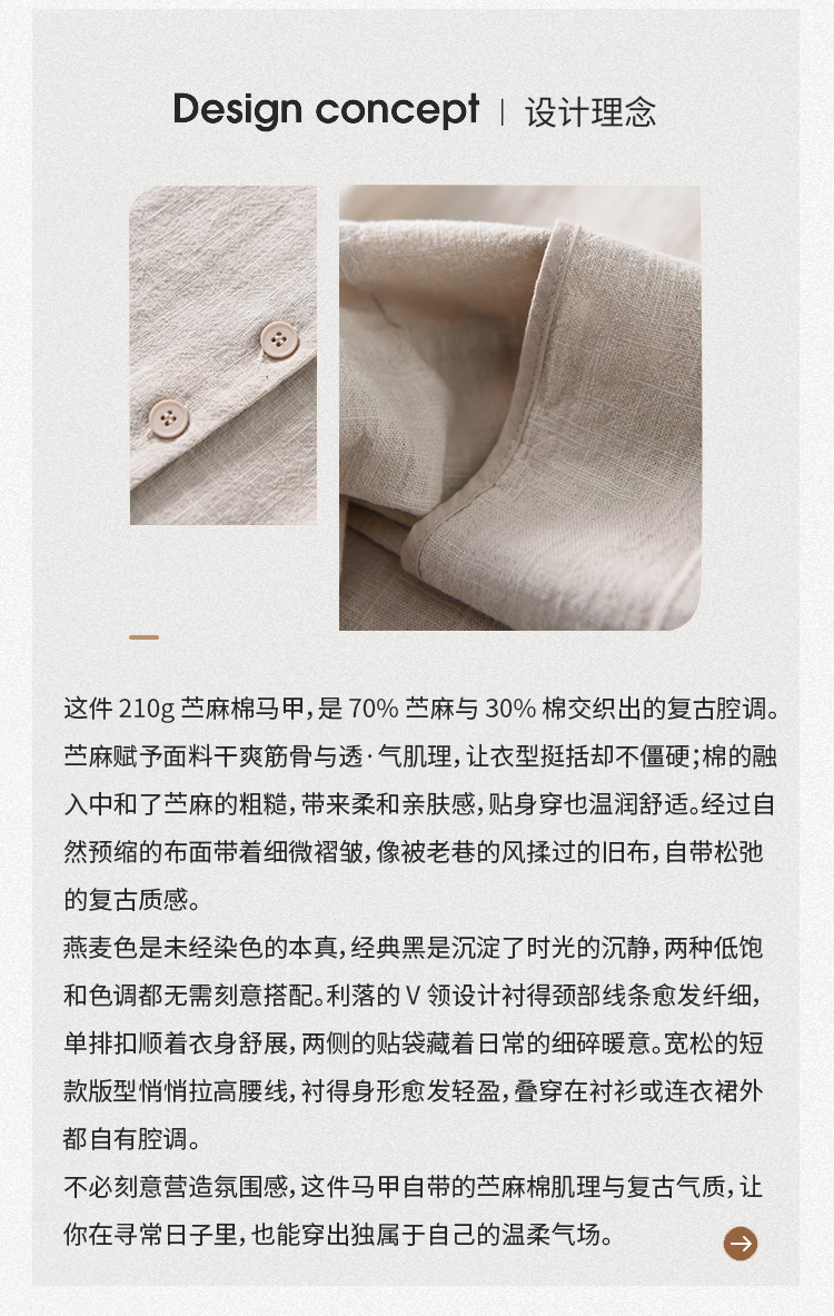 东方美学【吾乃兮 新中式苎麻服饰合集】苎麻70%+棉30%的黄金混纺比例 打造慵懒文艺、简约度假风格穿搭