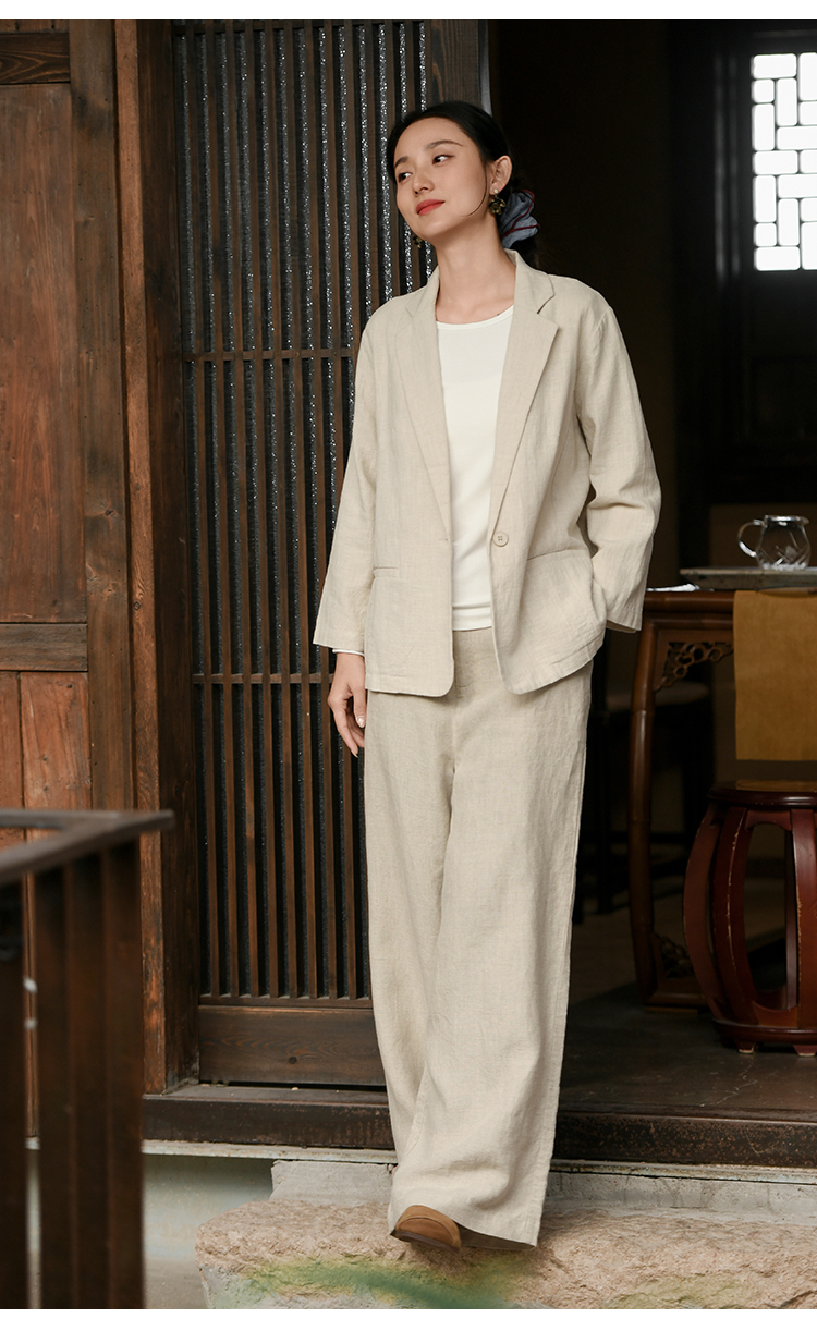 品名:6635苎麻棉阔腿裤 6624苎麻西服 6629苎麻衬衫 6626苎麻马甲