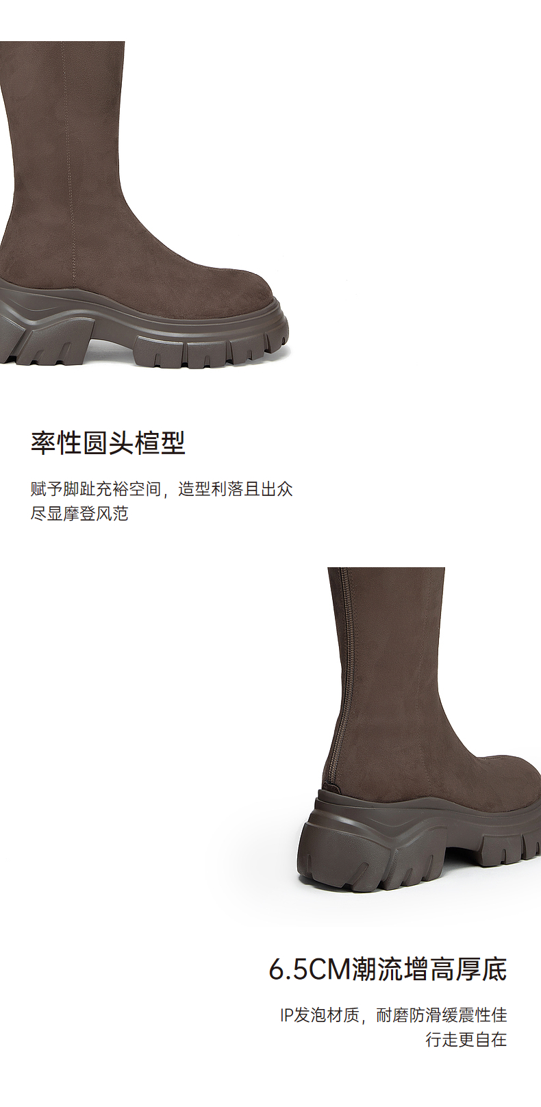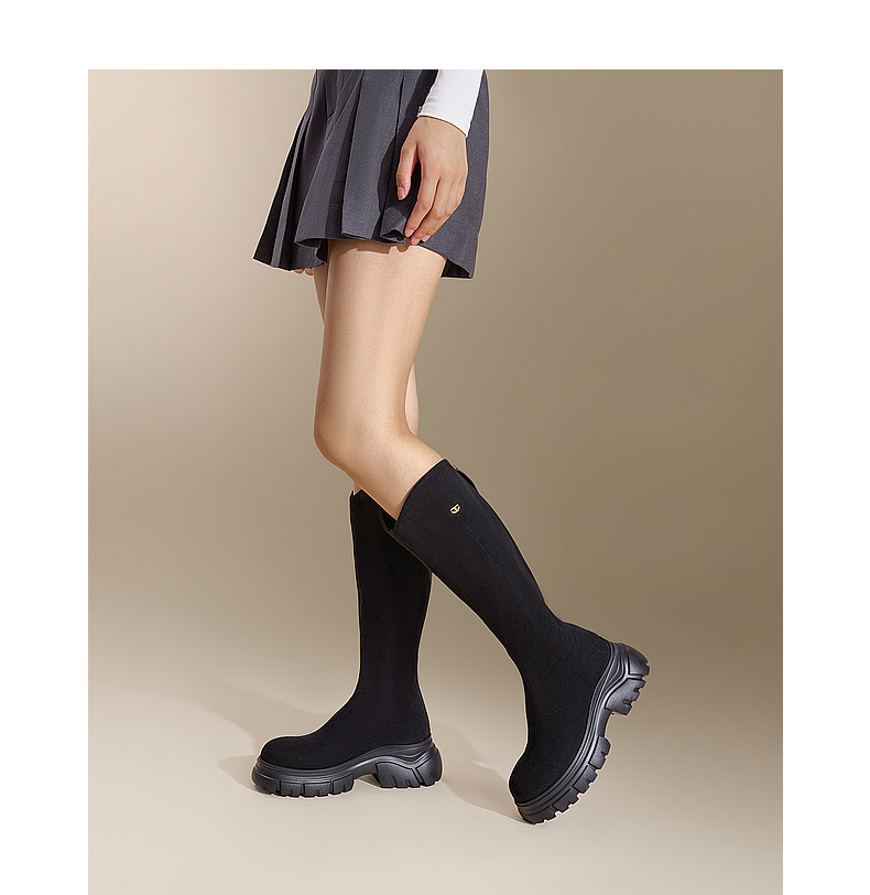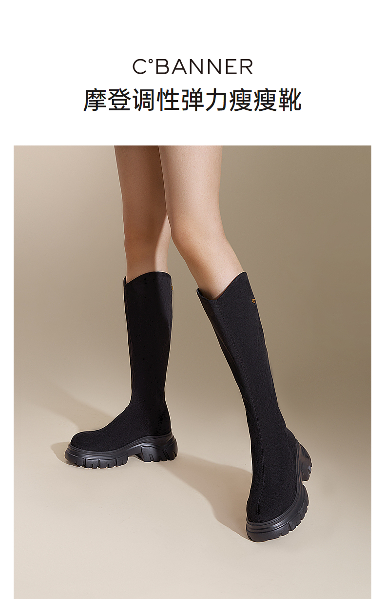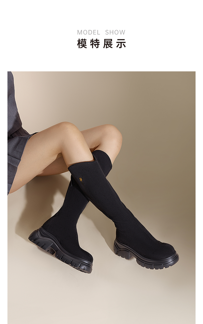 千百度厚底潮流弹力袜靴女冬季增高长靴瘦瘦靴A24537539