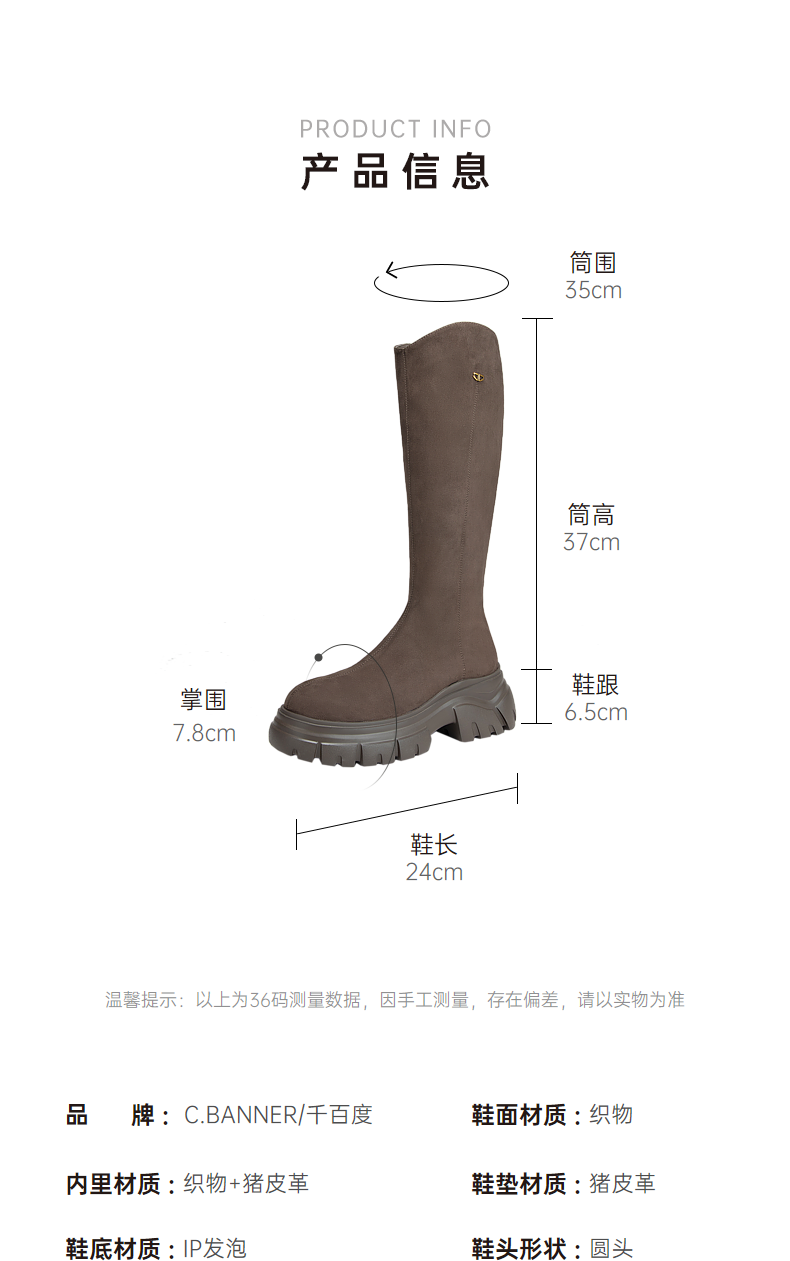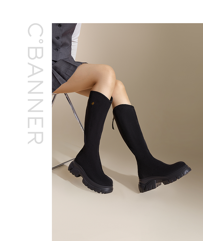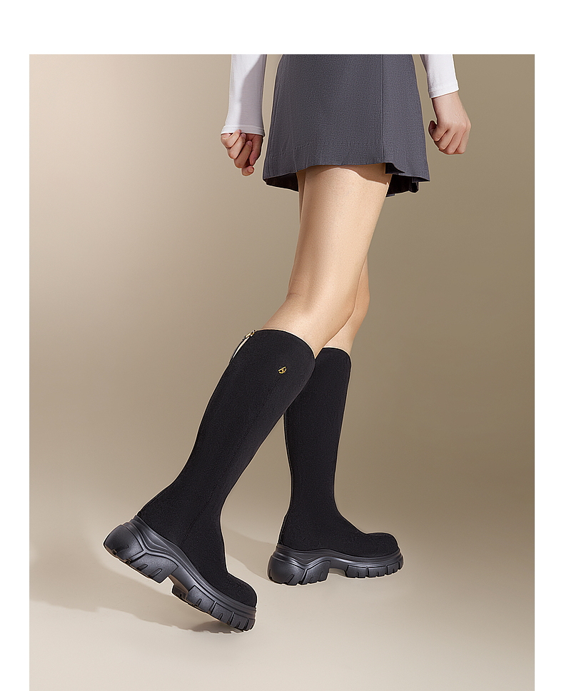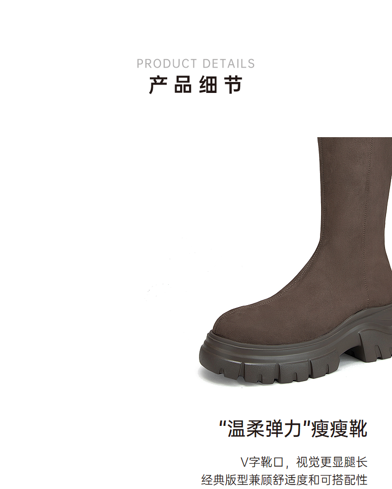 千百度厚底潮流弹力袜靴女冬季增高长靴瘦瘦靴A24537539