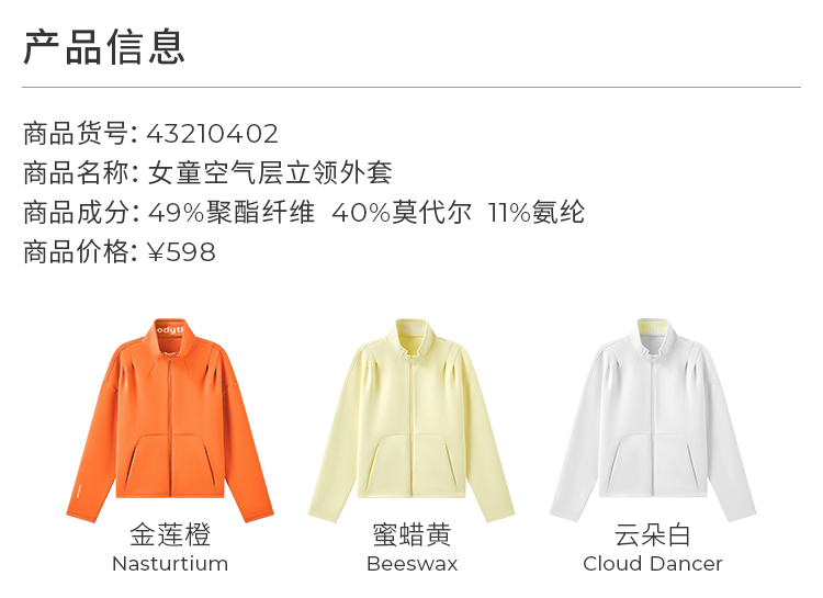 moodytiger24秋新女童立领外套百搭舒适透气儿童户外运动衣43210402【DR】