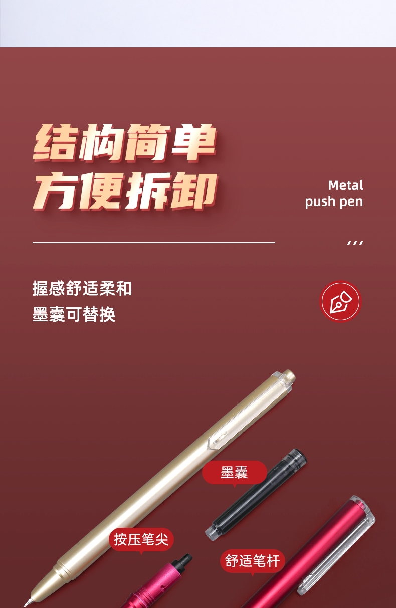可替换墨囊的按动钢笔轻便美观拼团专享