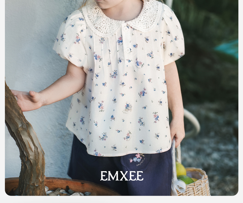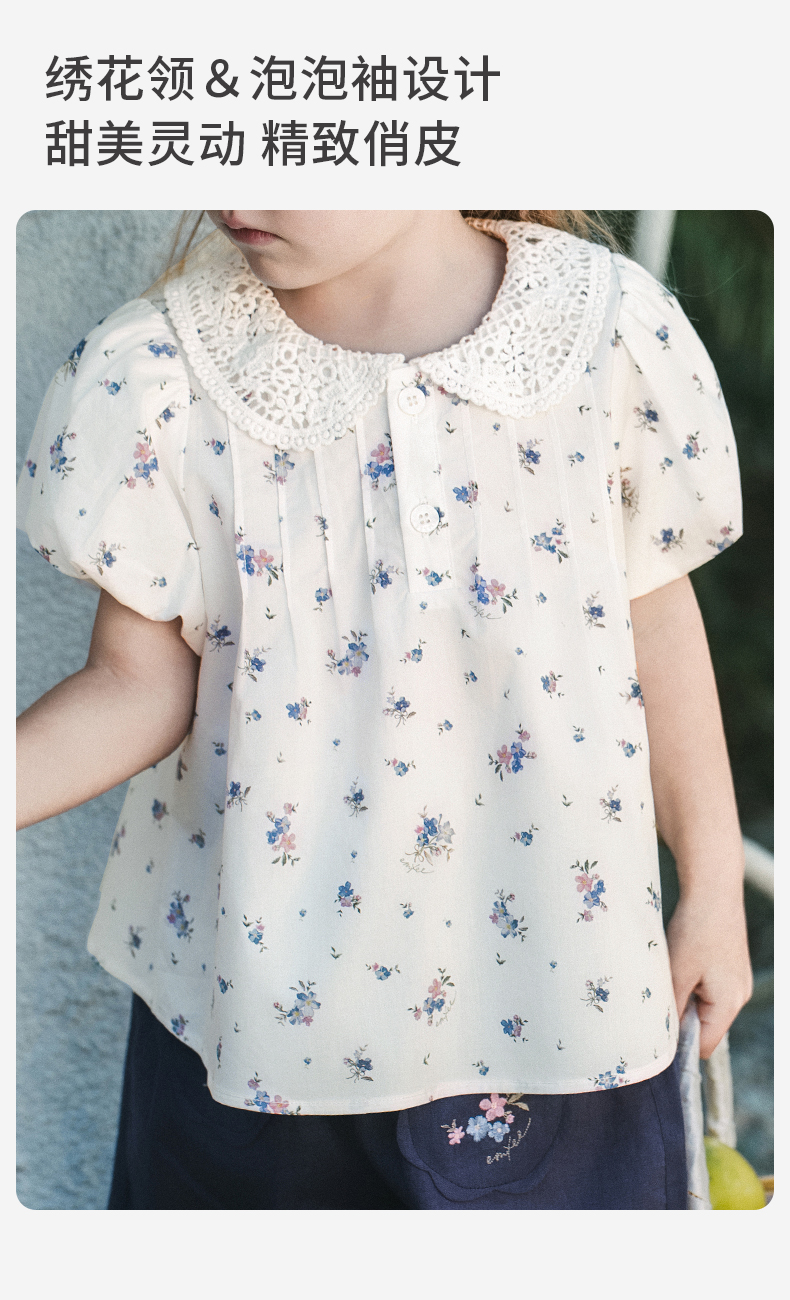 【宝宝服饰】嫚熙童装儿童娃娃衫2026新款衬衫女童娃娃领碎花女宝夏季短袖T恤