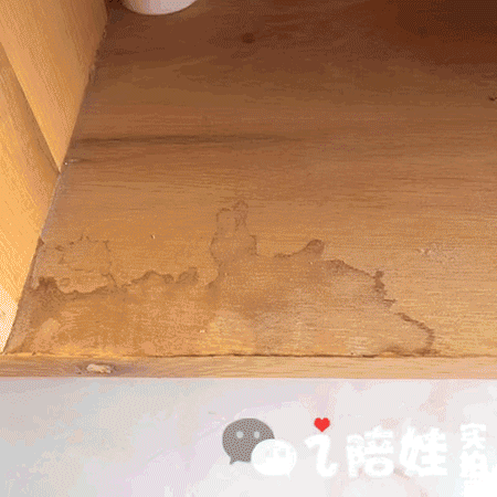 还有就是一些卫生死角的地方,一般都是陈年老垢,比如这块木茶几柜底,用这个清洁液也是不怎么费劲就抹掉了