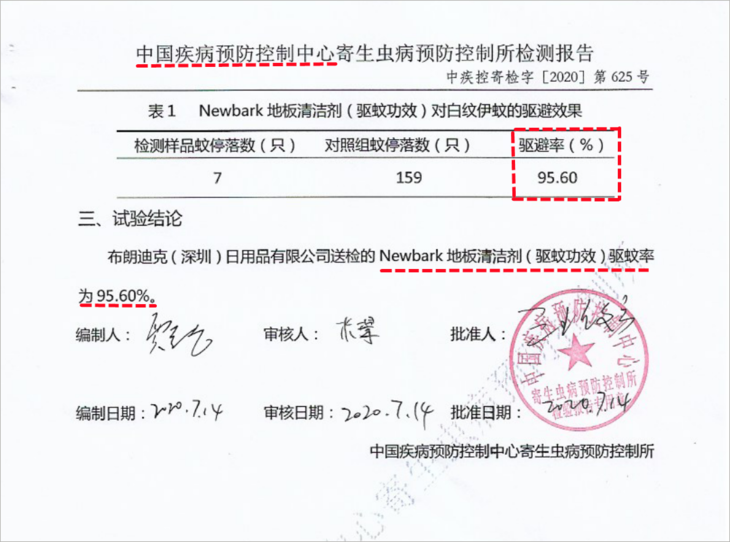 还有关于它的驱蚊效果。我在产品资料里有看到中疾控出具的一个检测。它的原液对趋避蚊子确实有效,而且趋避能达到95.6%。