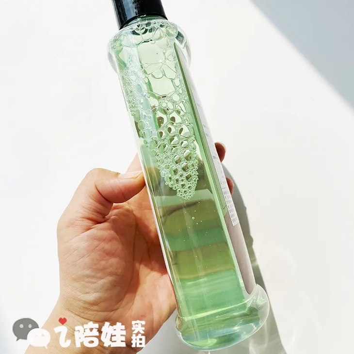 它的质地很清爽,不黏稠。就是这种有淡淡植物香的浅绿色的水状