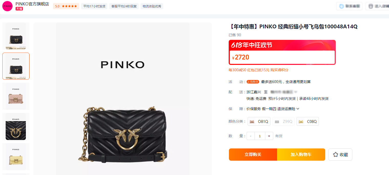 【6.17王炸割肉价】PINKO 通勤经典绗缝飞鸟燕子包 (大号长26宽7高16 无芯片)