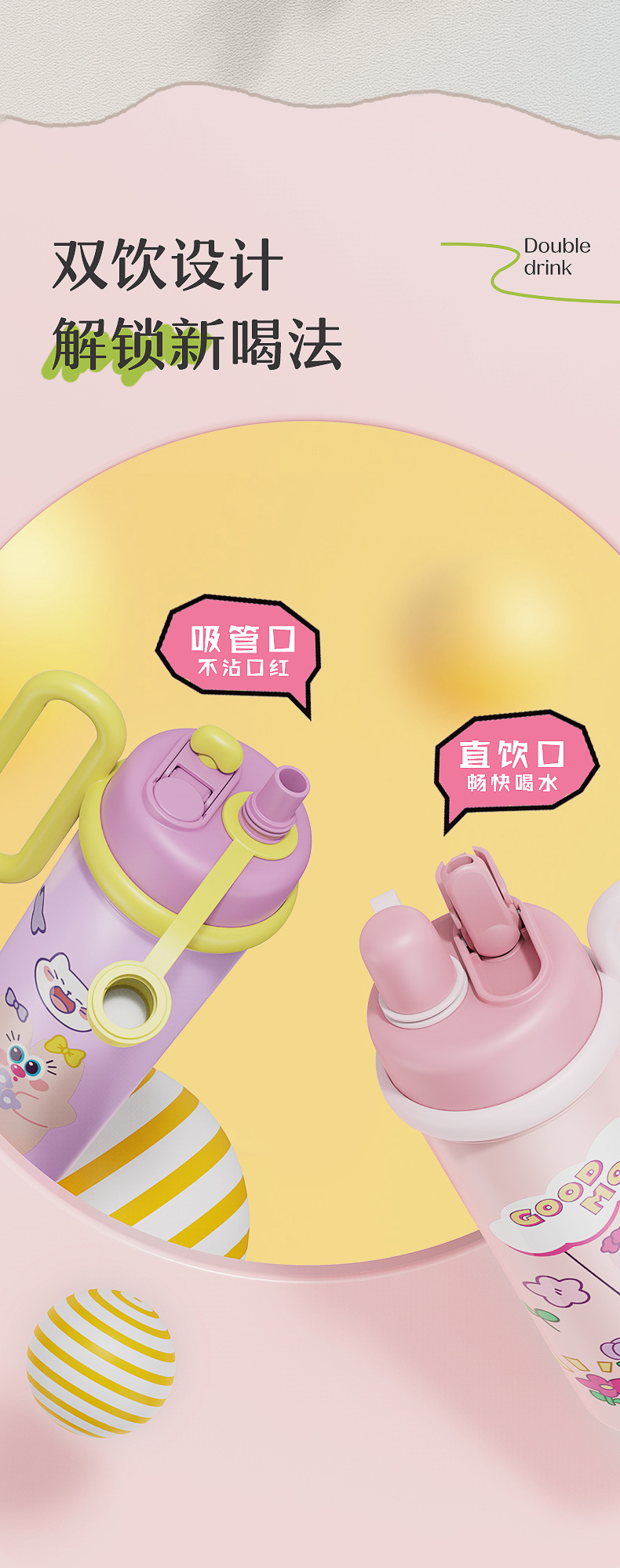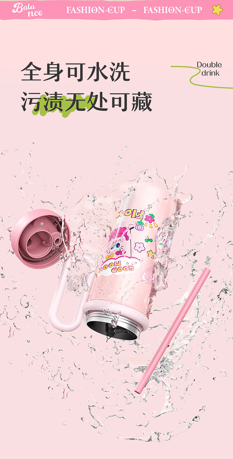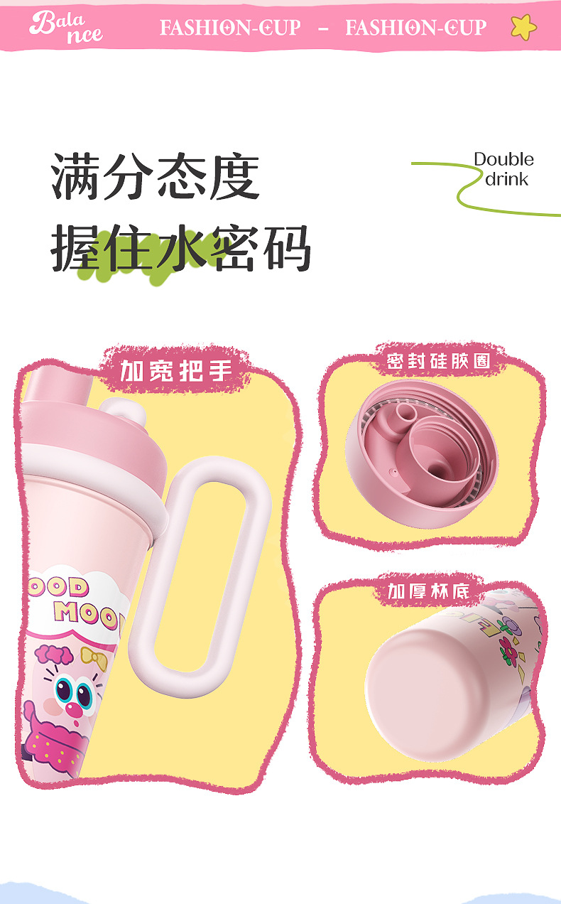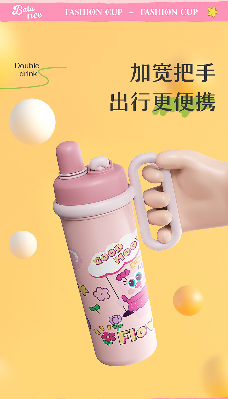 【萌趣食品!级双饮700ML保温杯】新款可爱多大容量水杯 双饮带手柄吸管杯 卡通创意保温杯 316不锈钢食品级保温杯