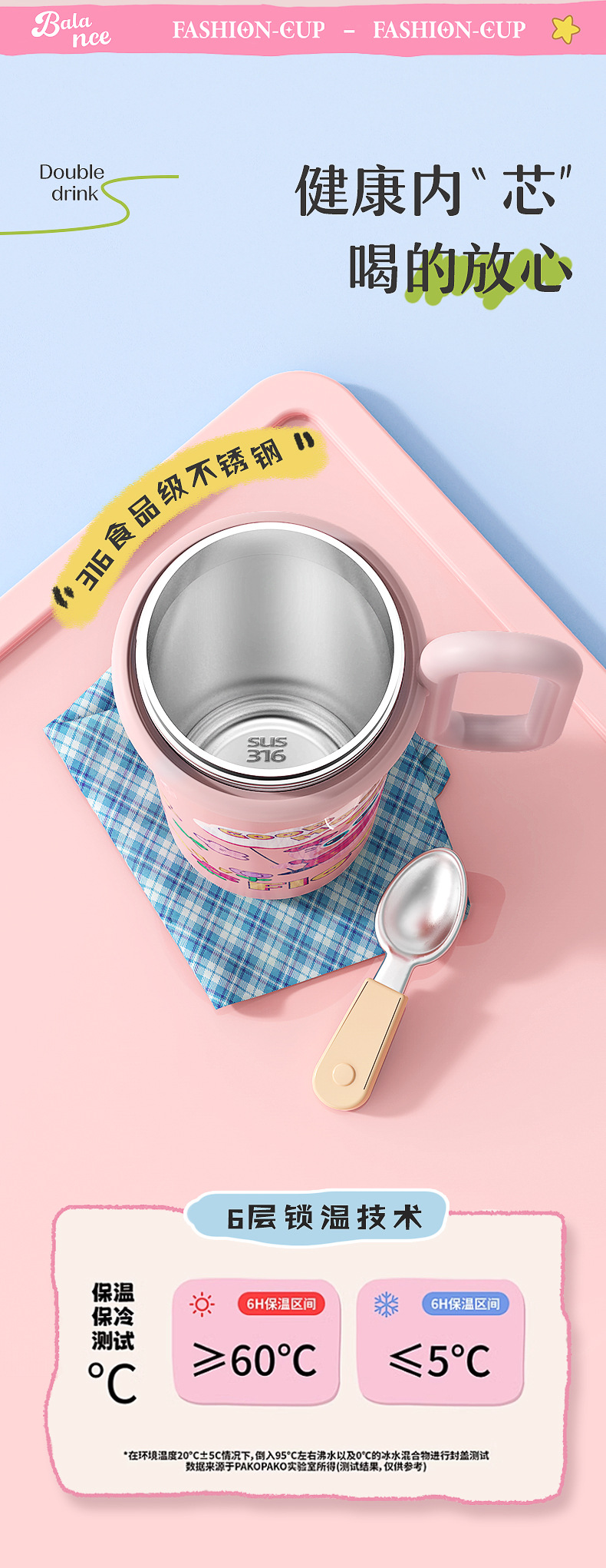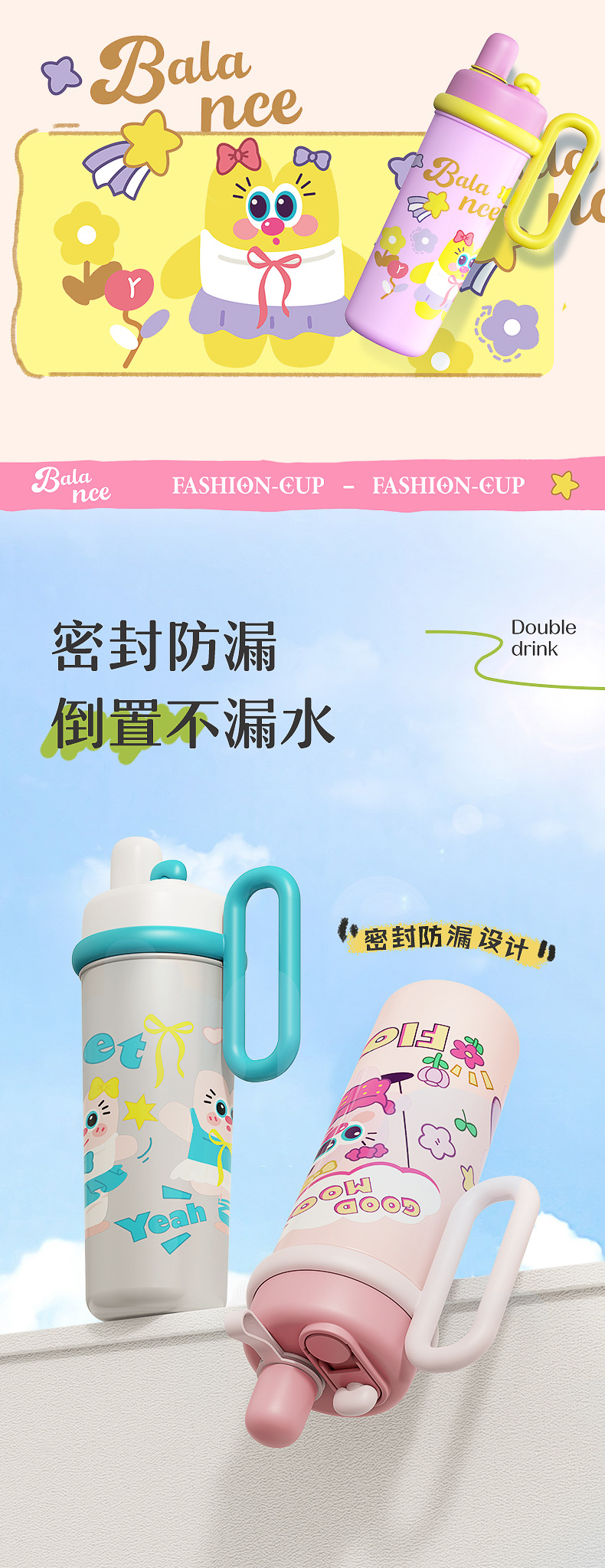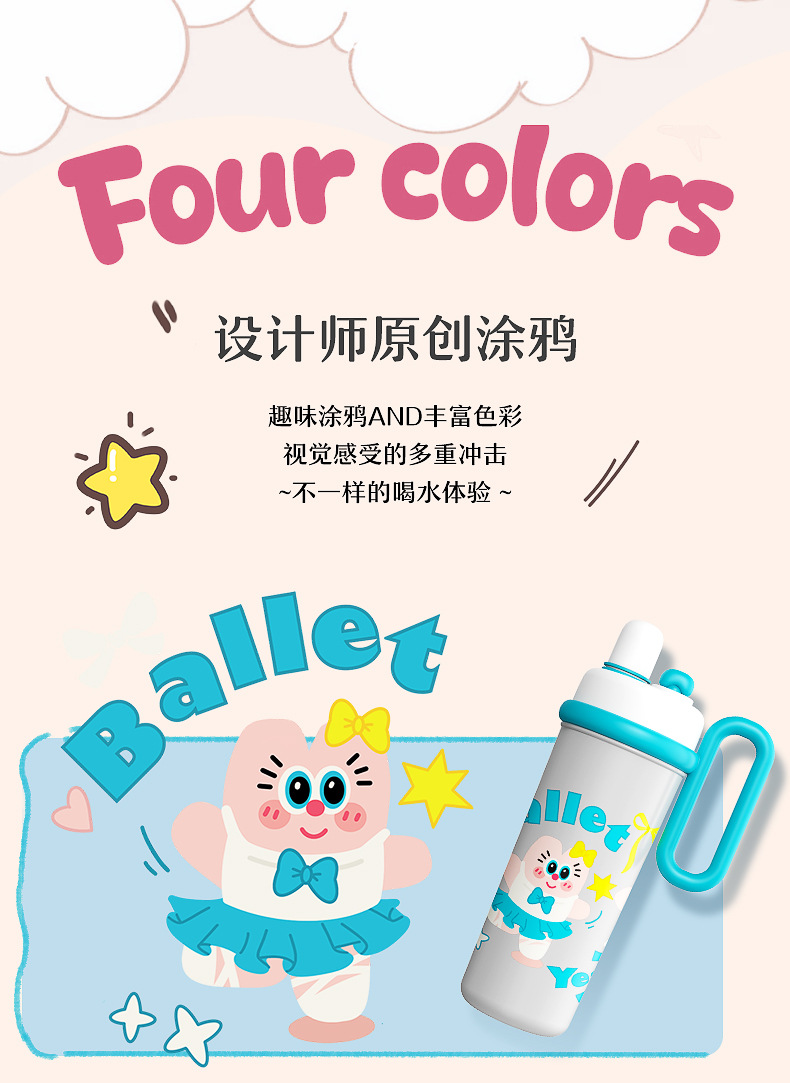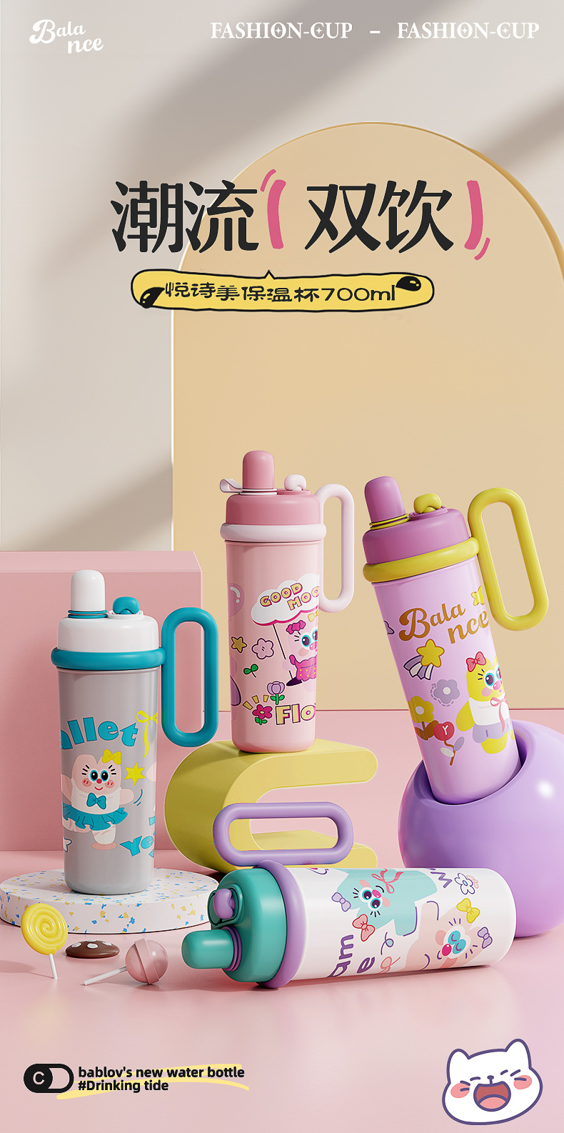 【萌趣食品!级双饮700ML保温杯】新款可爱多大容量水杯 双饮带手柄吸管杯 卡通创意保温杯 316不锈钢食品级保温杯