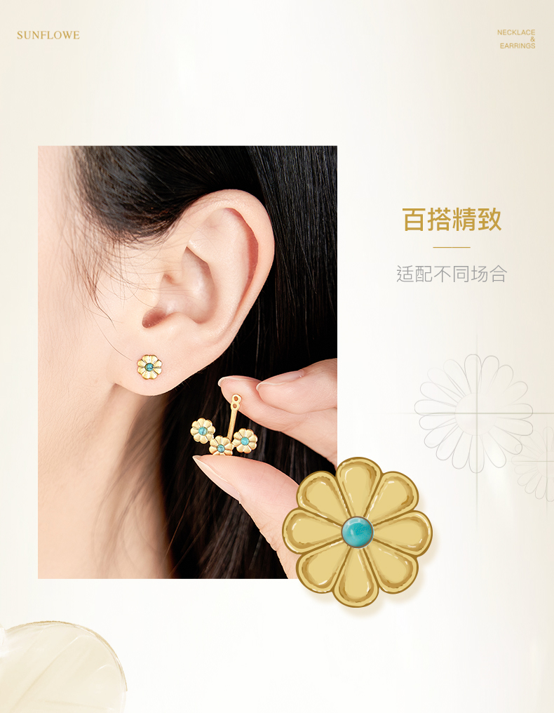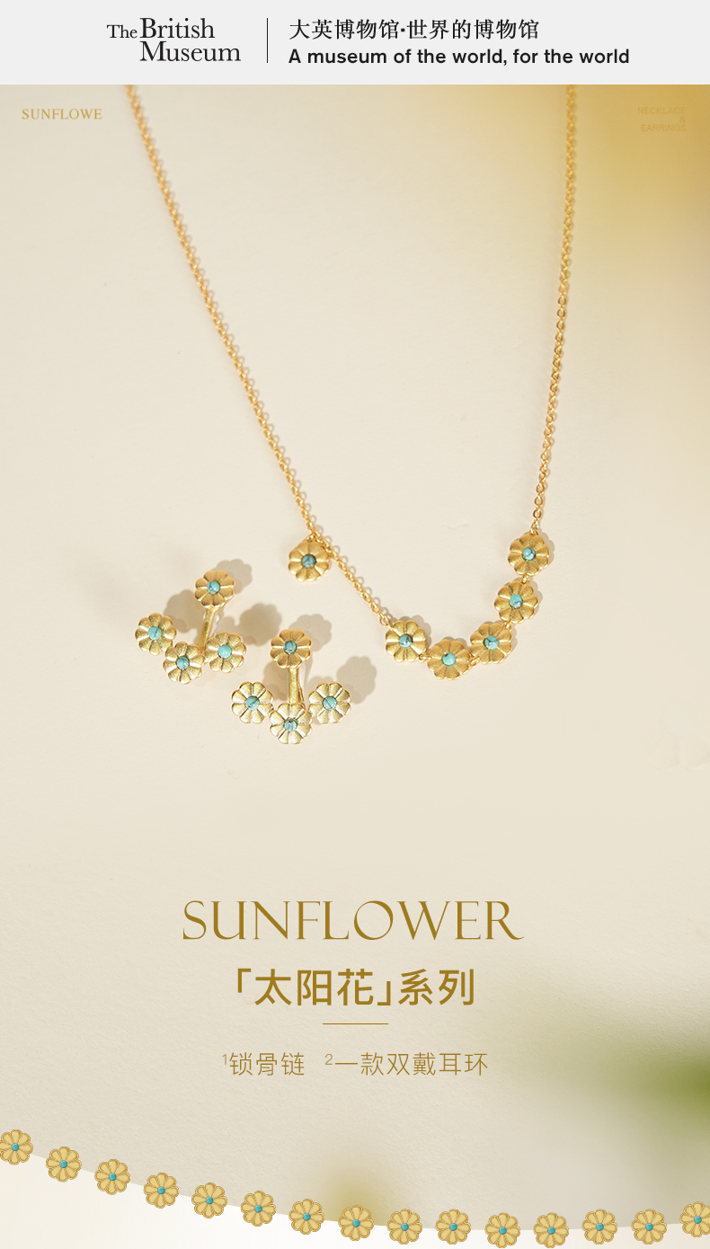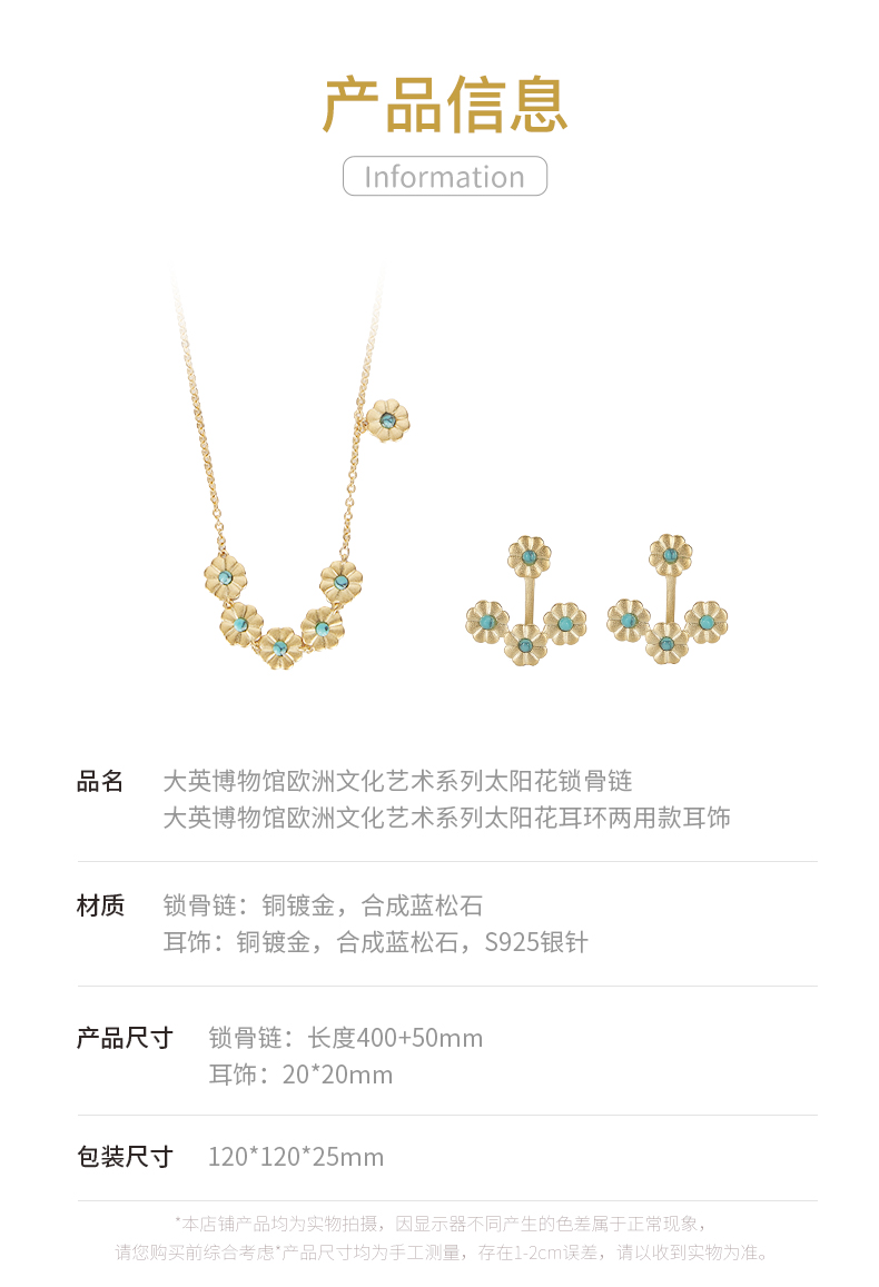 大英博物馆 欧洲文化艺术系列 太阳花耳环两用款耳饰 太阳花锁骨链
