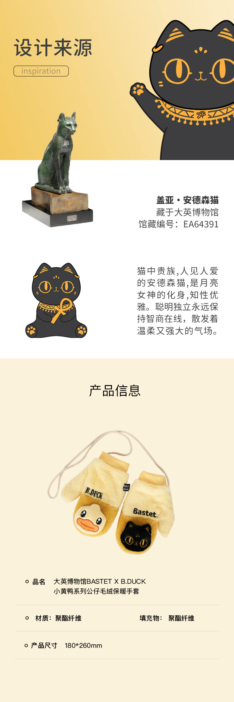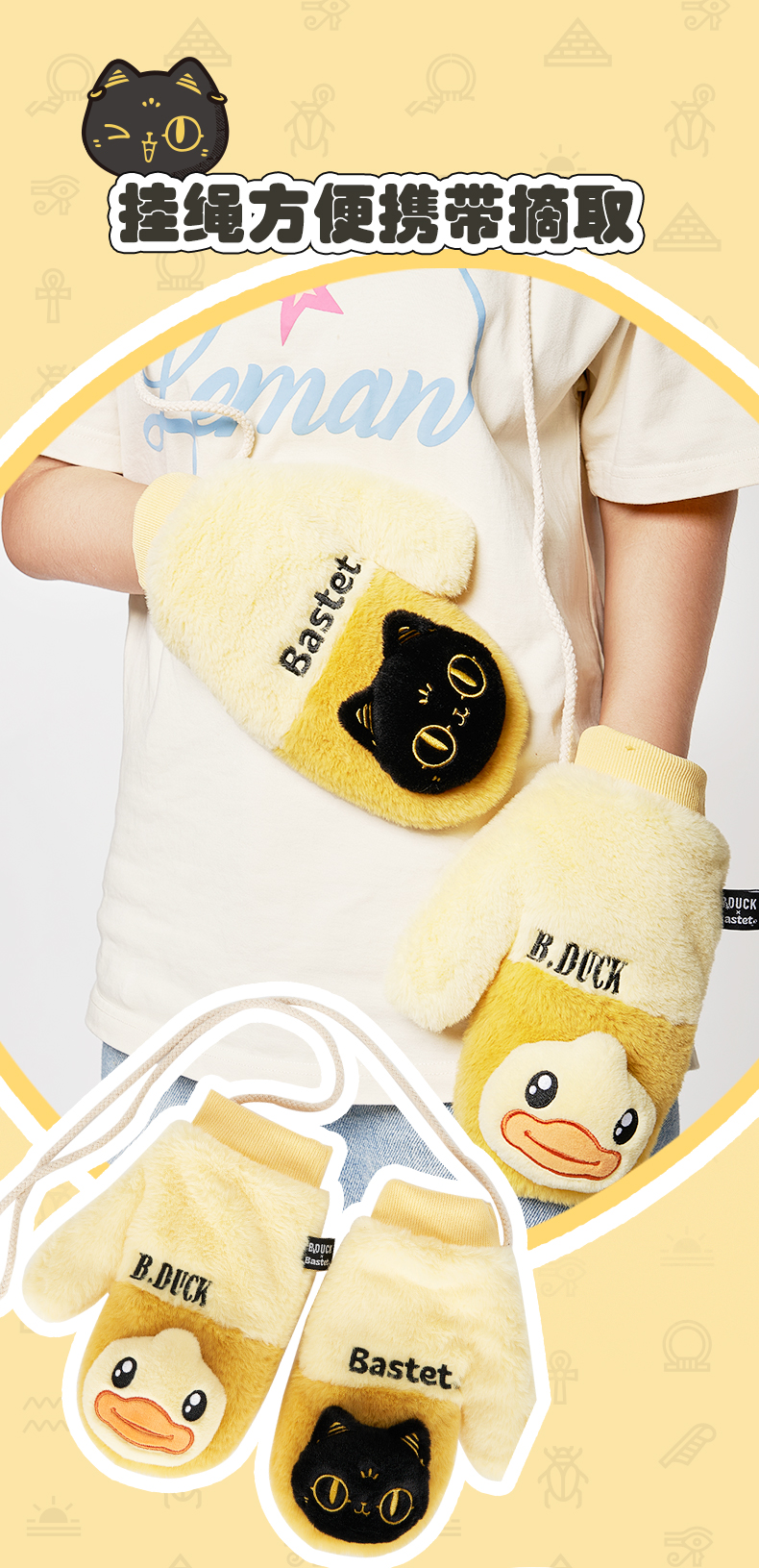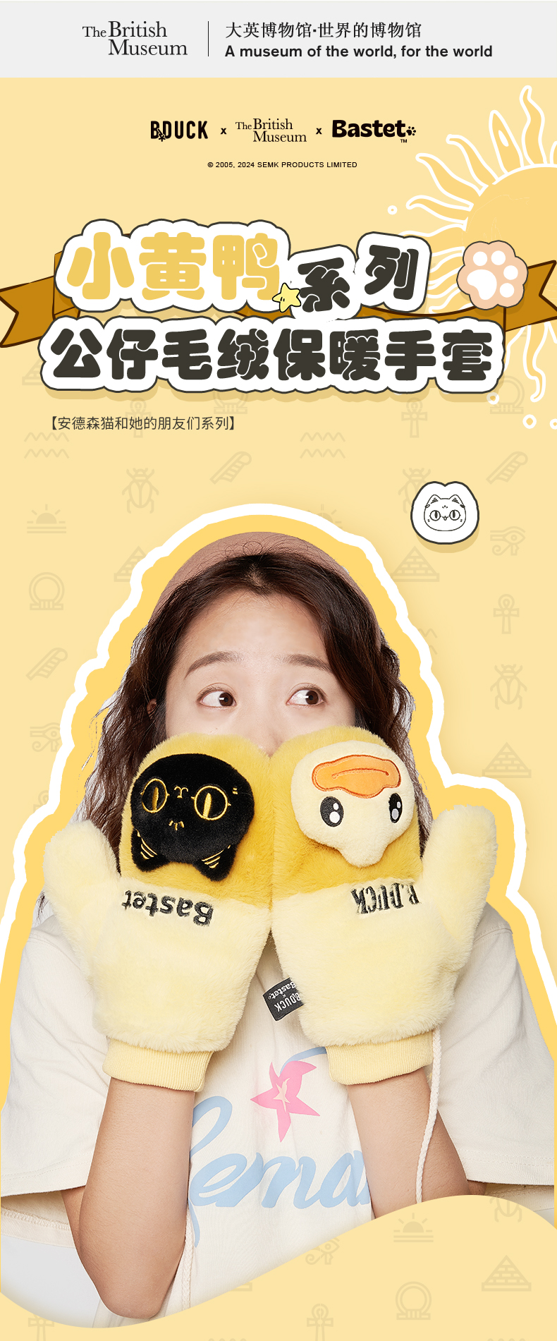 大英博物馆Bastet X B.Duck小黄鸭系列公仔毛绒保暖手套