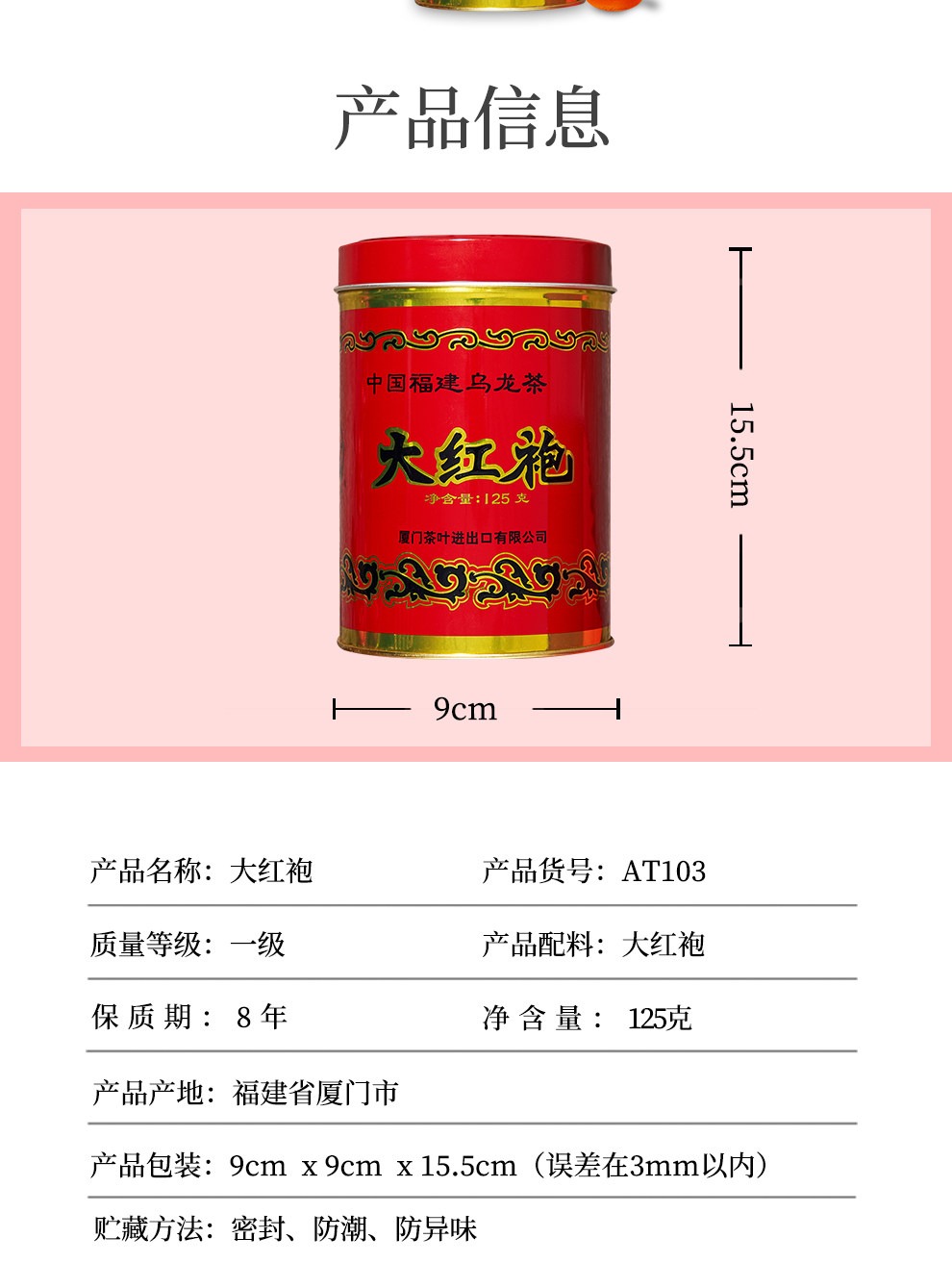 中粮-中茶海堤AT103浓香型红罐装125g乌龙茶岩茶大红袍暖身