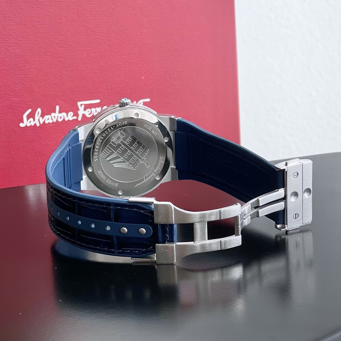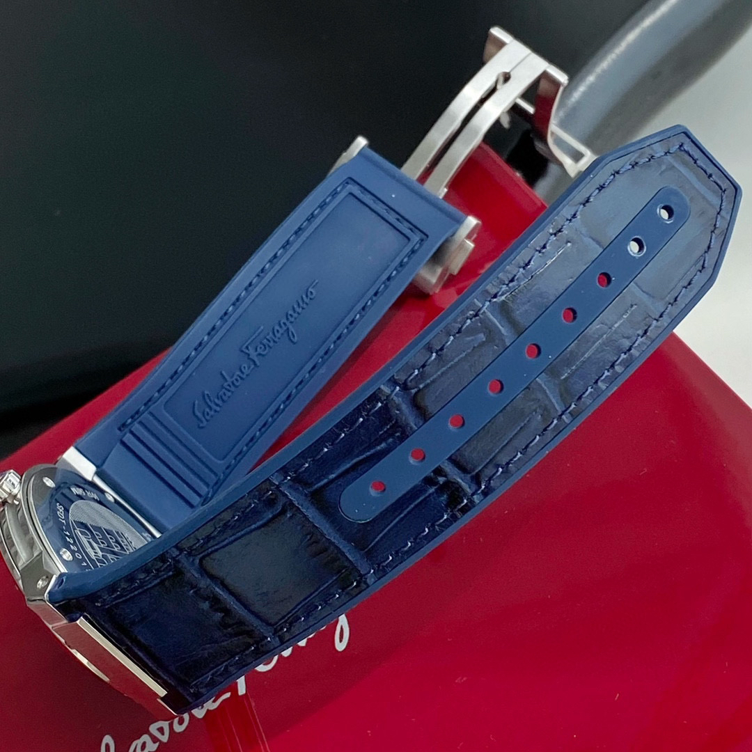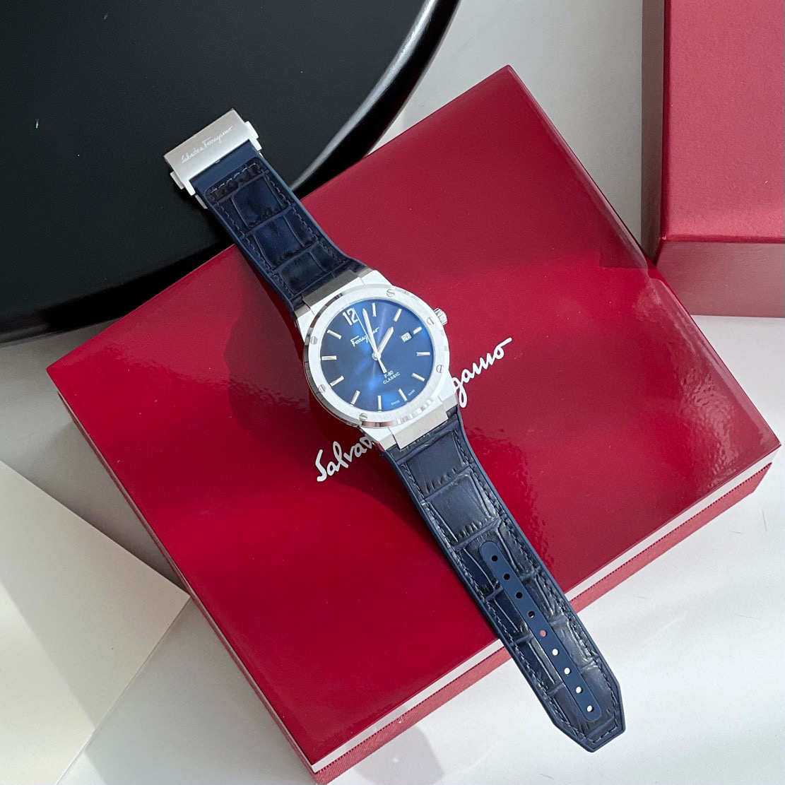 新款首发!外贸出口订单,Ferragmo F-80 Slim系列,简约优雅时尚男表;表径:41mm,采用纤薄的表壳,运动的气质;鳄鱼纹蛇纹小牛皮搭配橡胶表带,运动与优雅联合,彰显匠心精工品质,防水防汗佩戴舒适;简约太阳纹盘面,经典大气三针设计,立体时标Logo增添视觉层次感,硬朗螺钉精钢表壳,拉丝工艺,搭配齿轮F浮雕表冠,突显现代都市型男格调;底盖镌刻Ferragamo总部斯皮尼图案。蓝宝石水晶镜面;瑞士石英机芯,性能稳定,走时精准,50米防水,配原盒包装一手好价!
