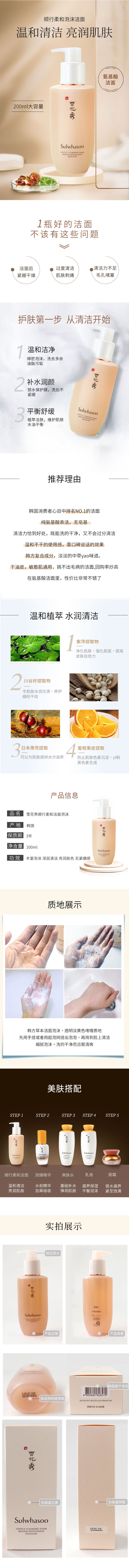 Sulwhasoo雪花秀顺行柔和洁面洗面奶200ml 洁颜泡沫 深层清洁