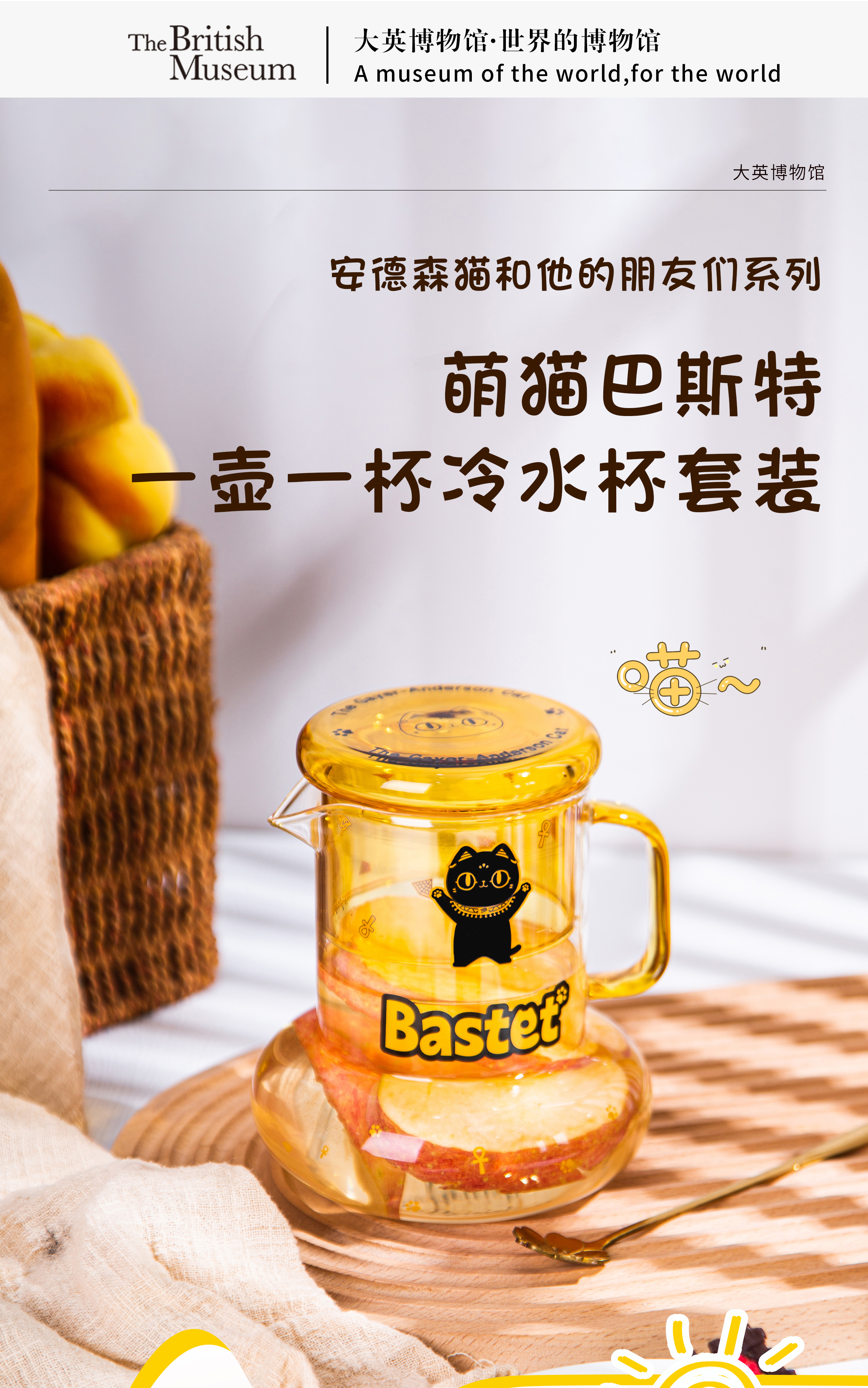 大英博物馆 盖亚·安德森猫和她的朋友们系列萌猫巴斯特一壶一杯冷水杯套装