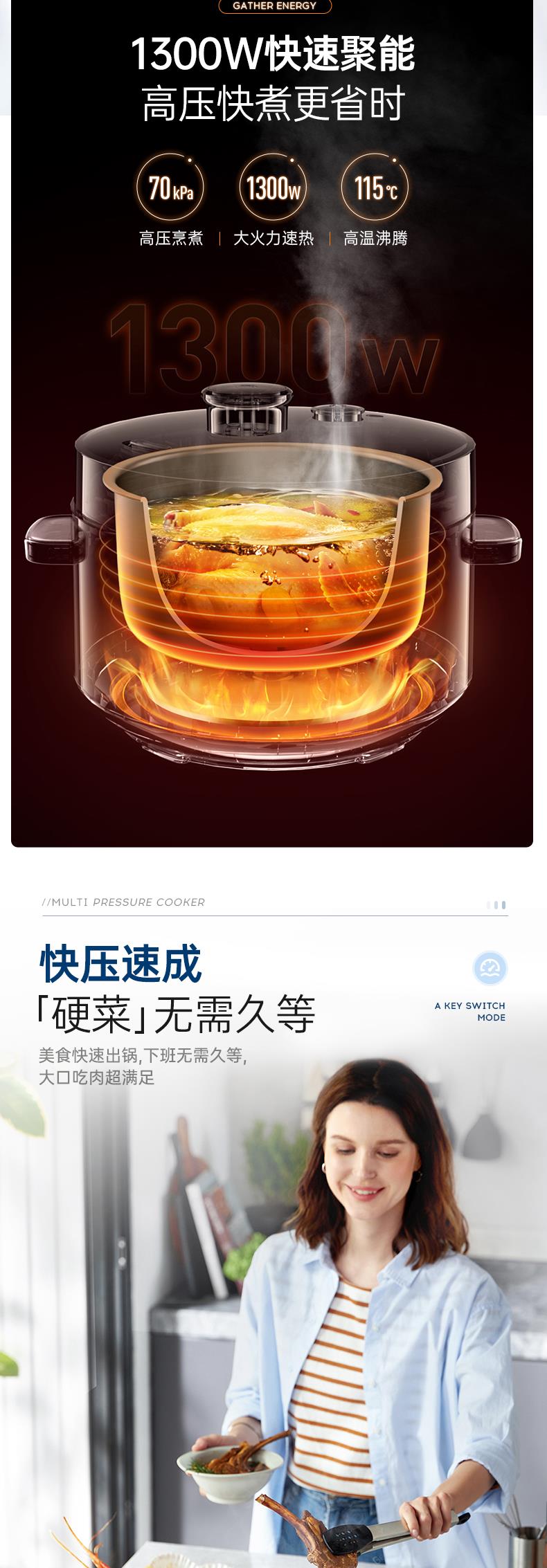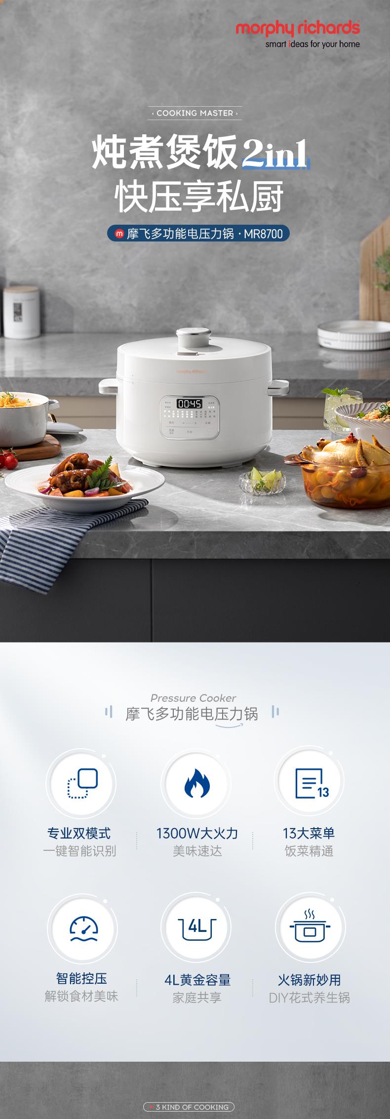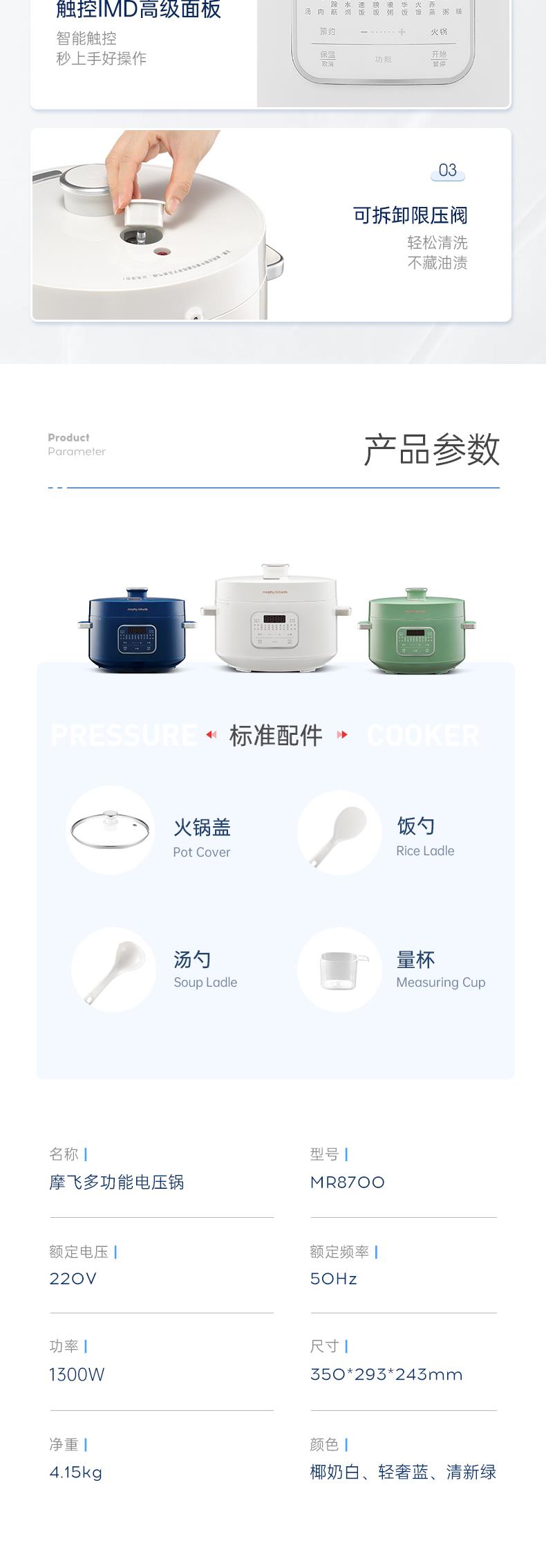 预售3天发货【自营】 摩飞 多功能压力锅 电饭煲 一键反向排气 5层厚斧内胆 MR8700
