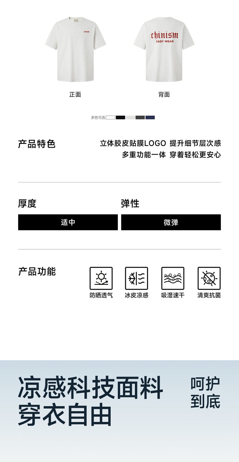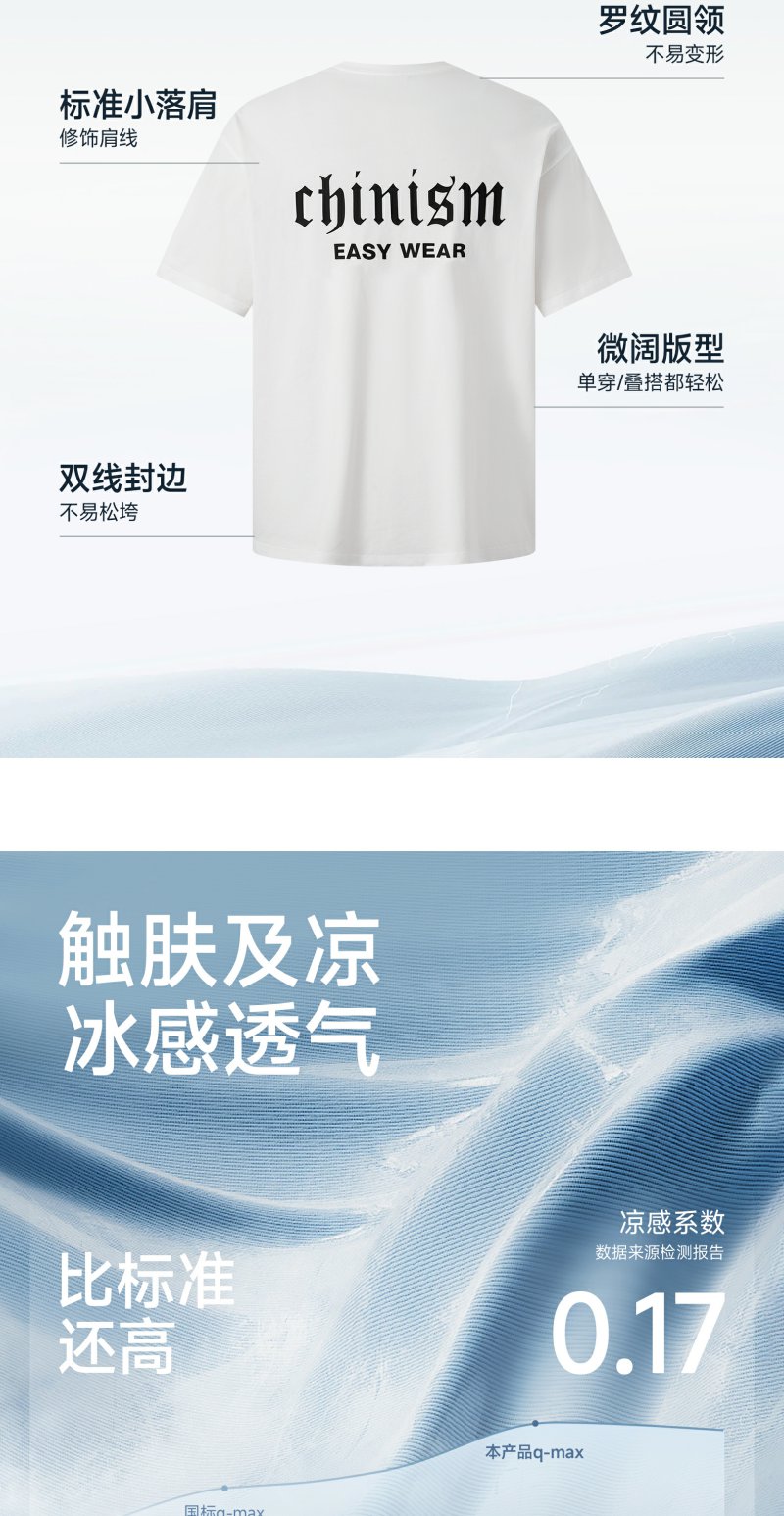 CHINISM赤尘 凉感短袖T恤男夏季新款宽松美式字母印花男士半袖