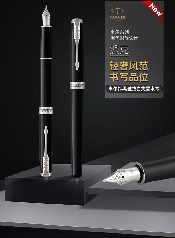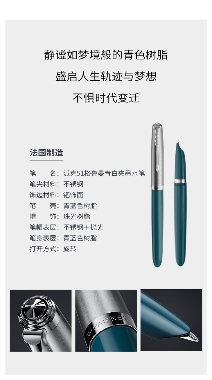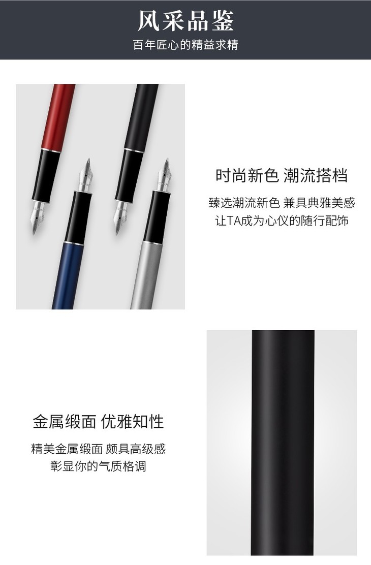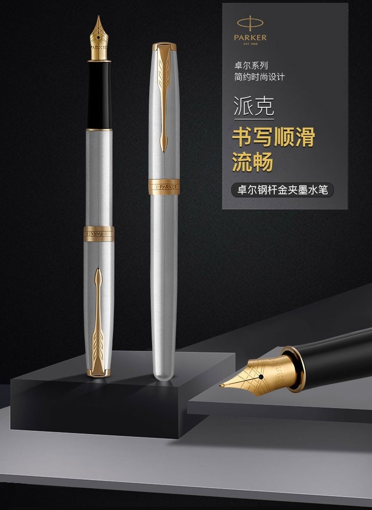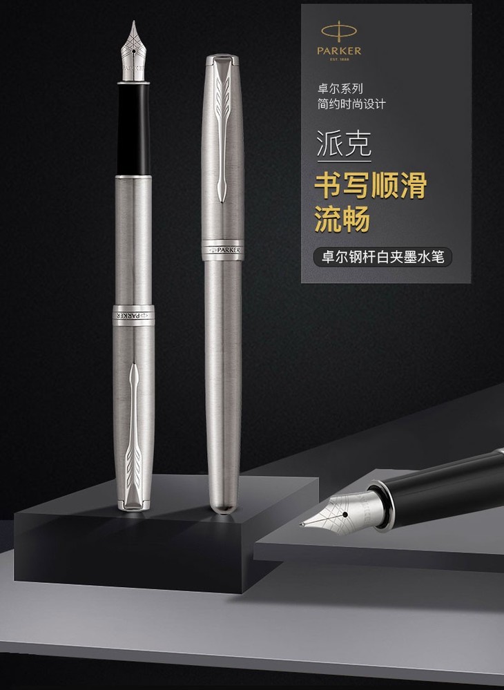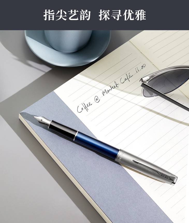 派克卓尔月光蓝白夹墨水笔 不锈钢笔尖