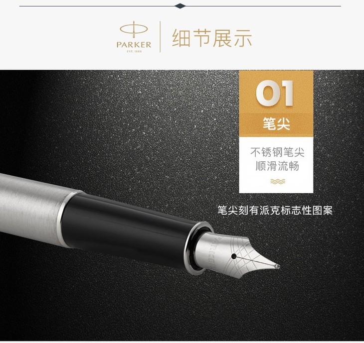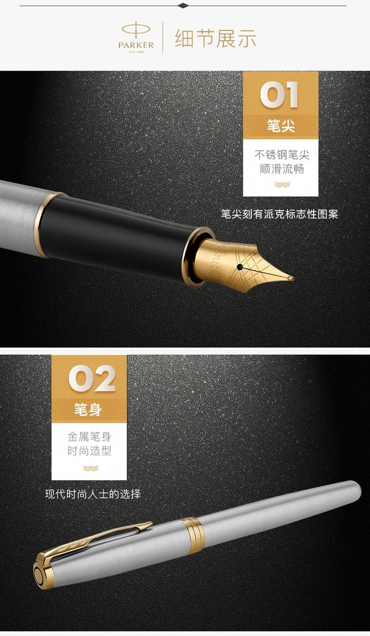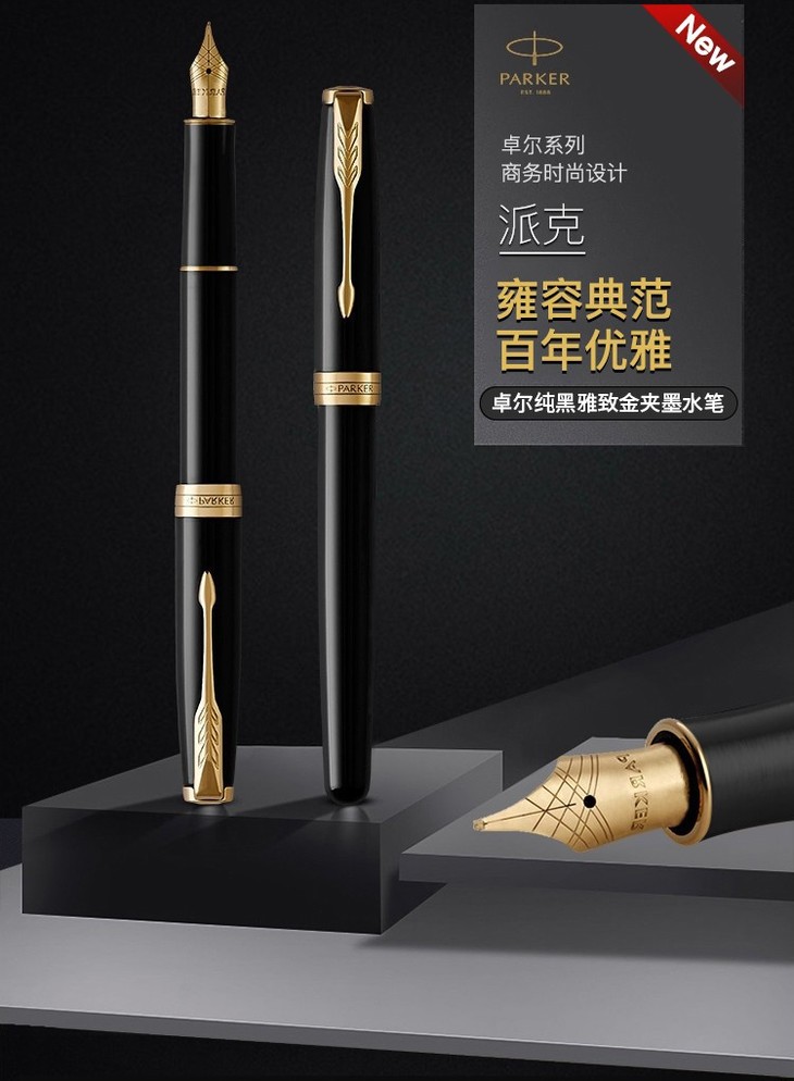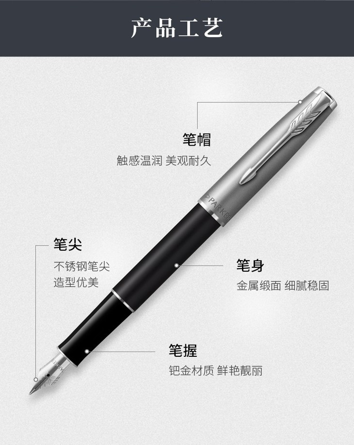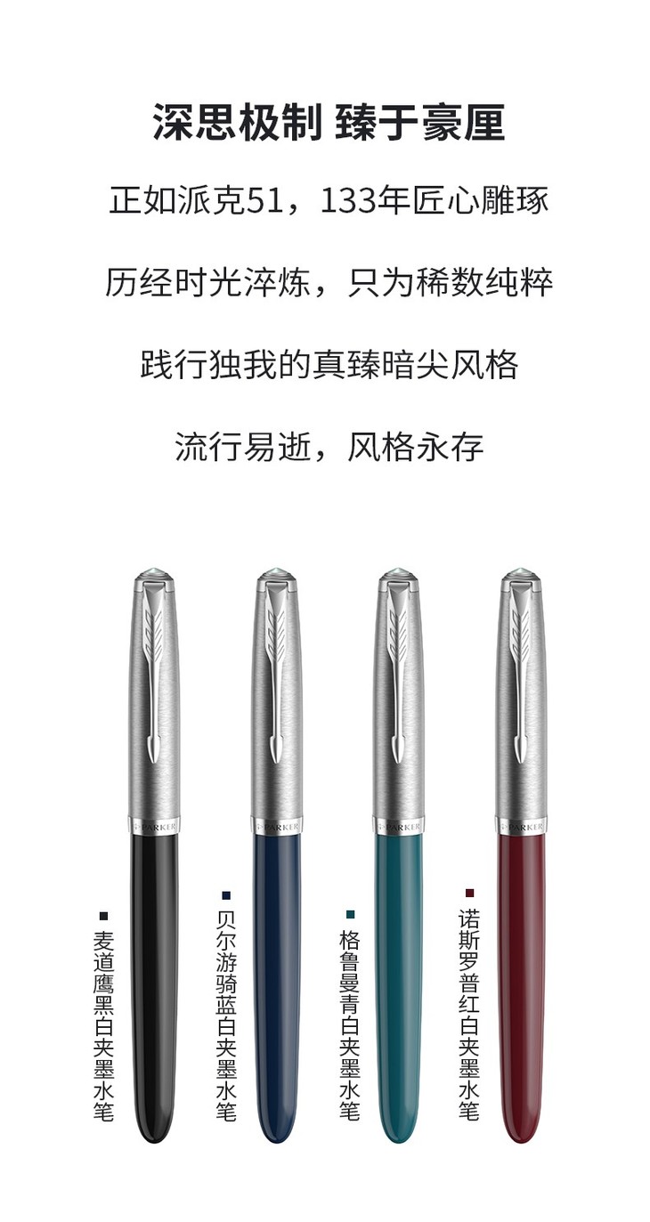 派克卓尔月光蓝白夹墨水笔 不锈钢笔尖