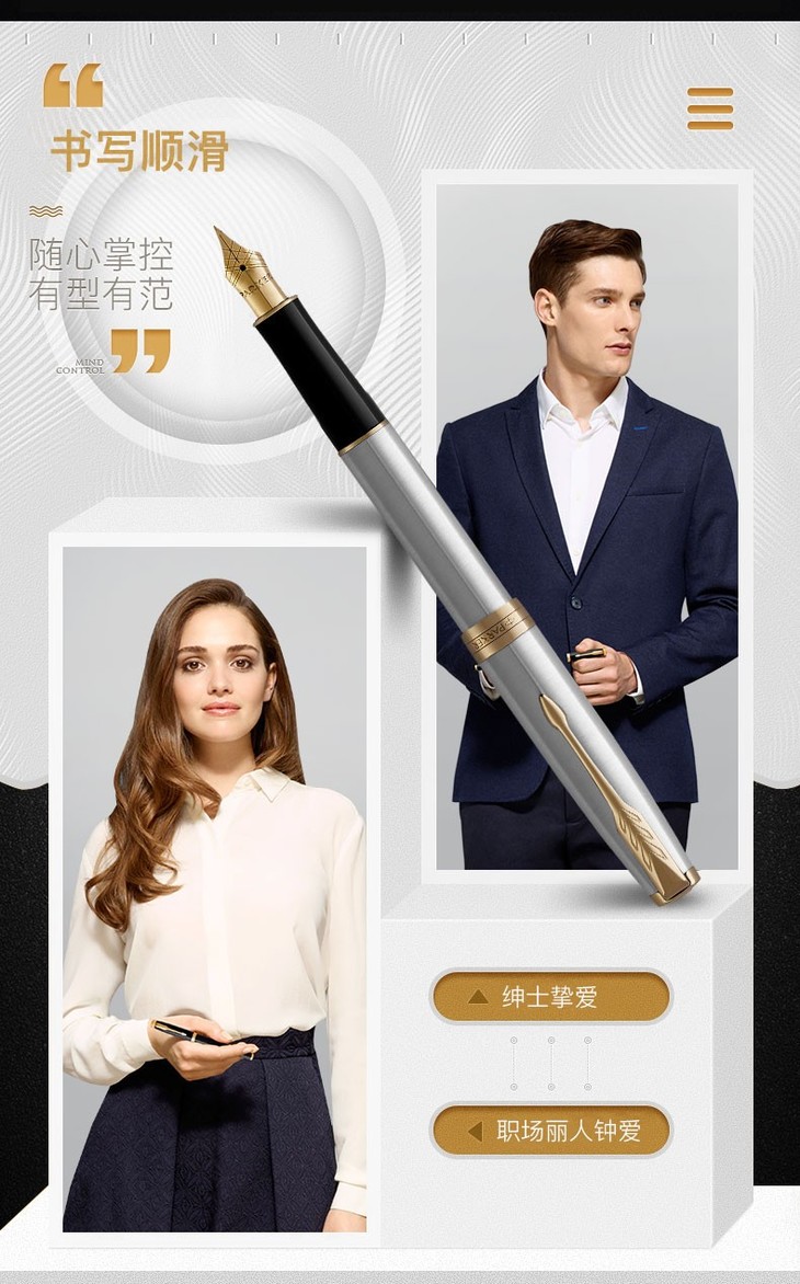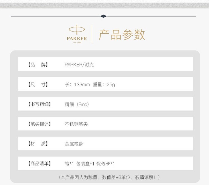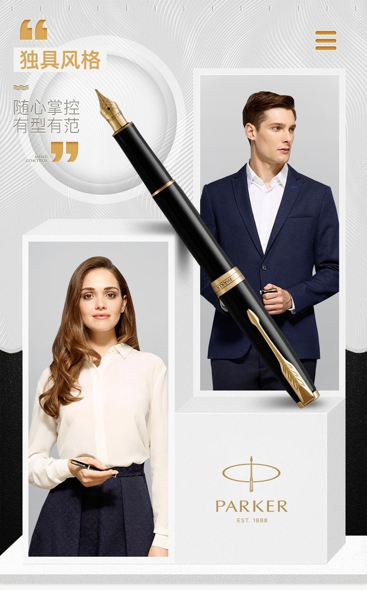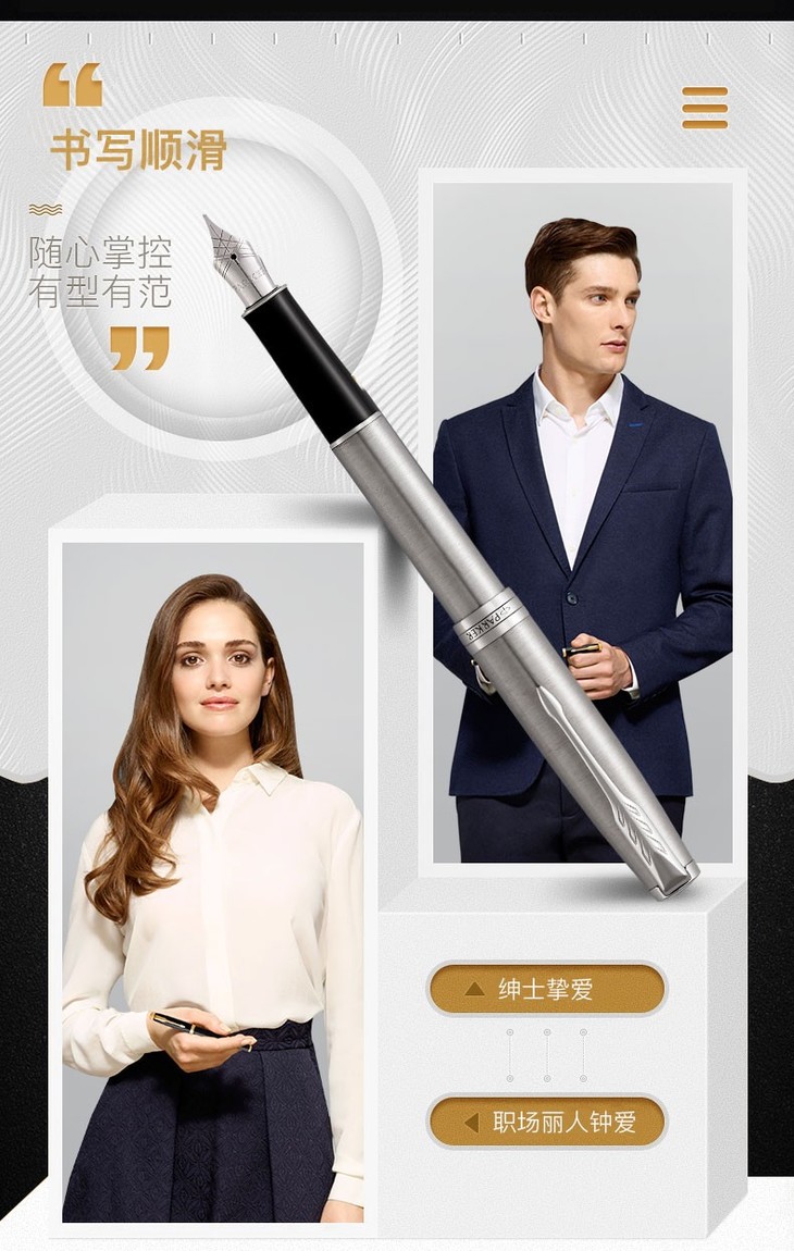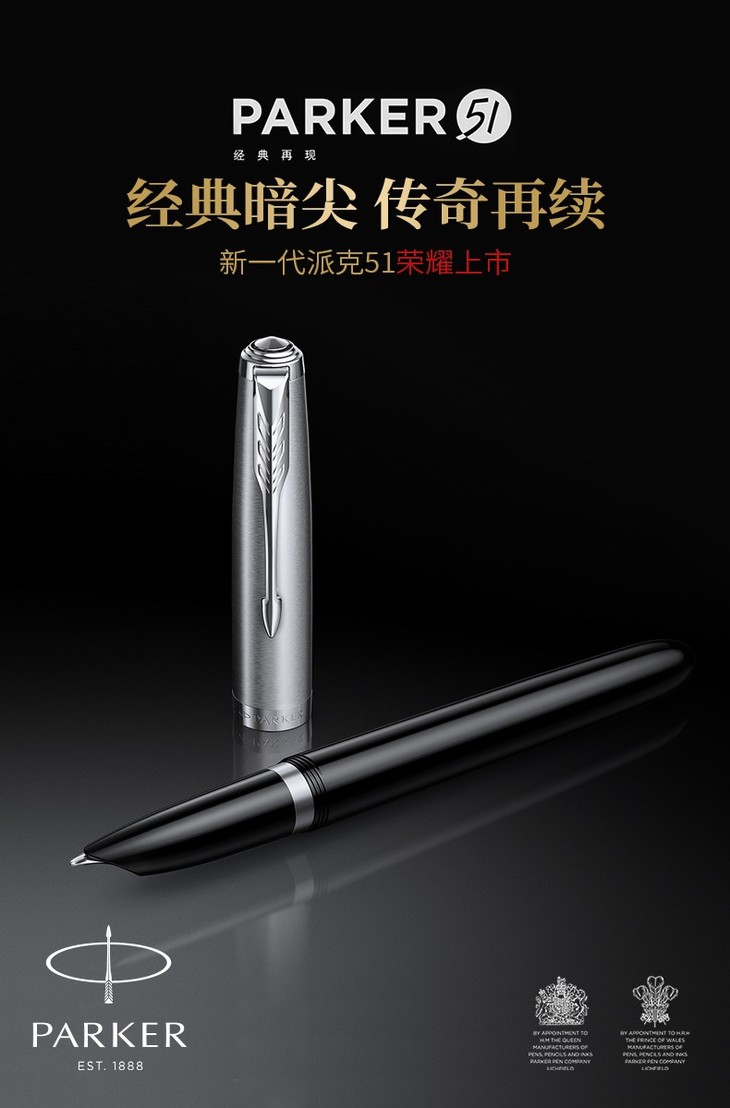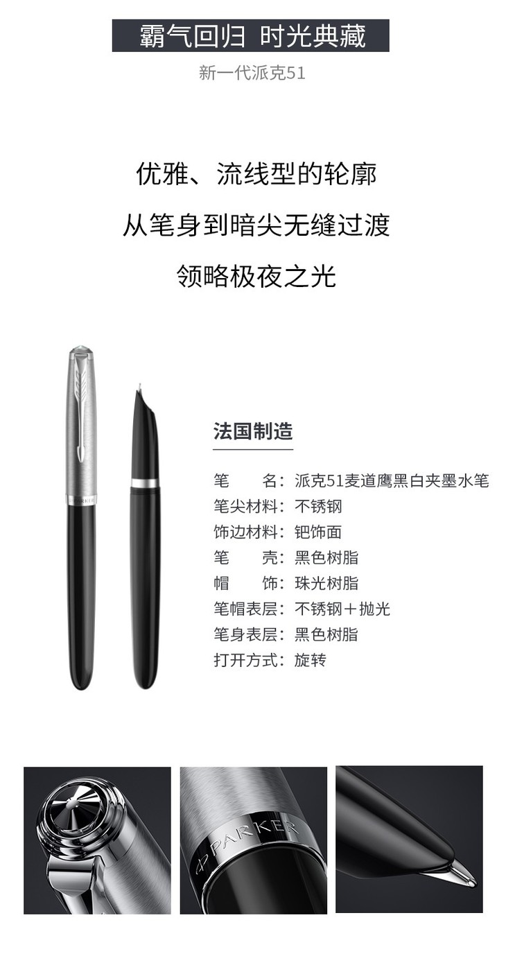 派克卓尔月光蓝白夹墨水笔 不锈钢笔尖