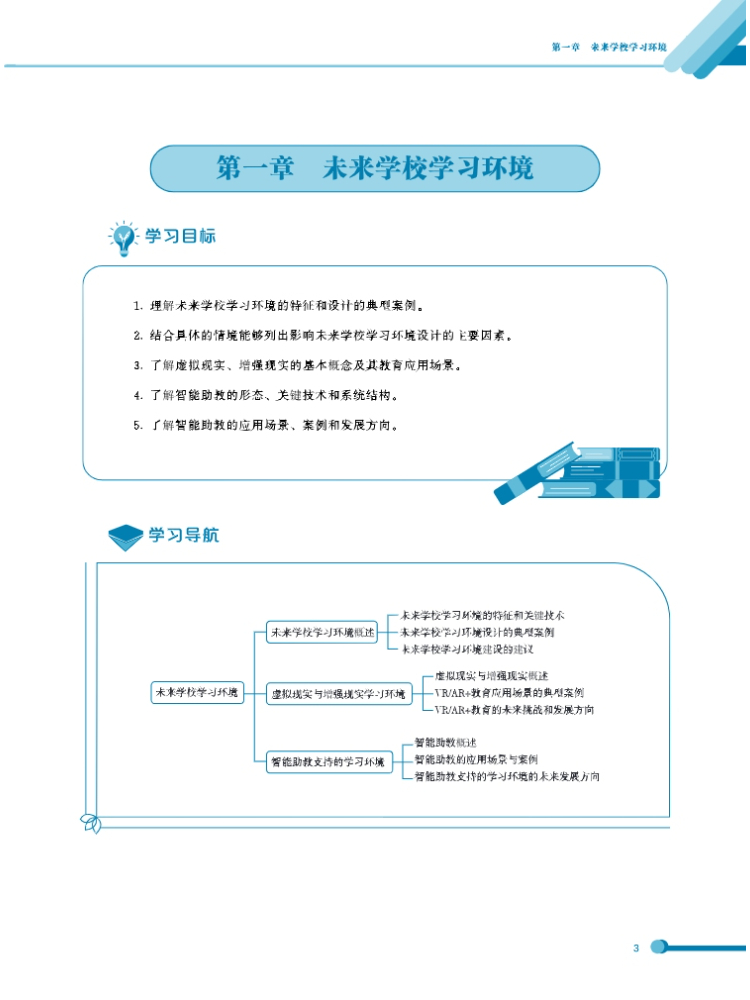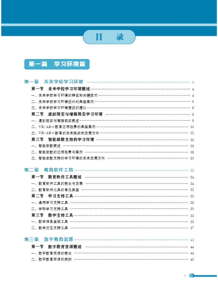 教材为《现代教育技术》课程的配套教材,该课程是一门面向北京师范大学一年级本科生开设的教育文化素养类通识必修课,课程服务于北京师范大学的“综合性、研究型、教师教育领先的中国特色世界一流大学”的办学定位,以“面向2035年了解、使用和适应未来教学环境、教学模式的人”的培养目标为指导,力求引导学生认识到智能时代技术赋能教育、变革教育的作用、意义、途径与方法,理解技术视角观察和解决教育问题的途径,体验技术赋能教育的解决方案,培养学生面向未来教育的前瞻性和成为面向未来人才的使命感。课程的核心性质是通识性,具体内涵为从教育文化素养提升的角度,培养学生面向未来教育的技术素养,致力于造就面向教育现代化的高素质国民,服务于师范院校学生教育问题解决思维与能力的全面发展。
