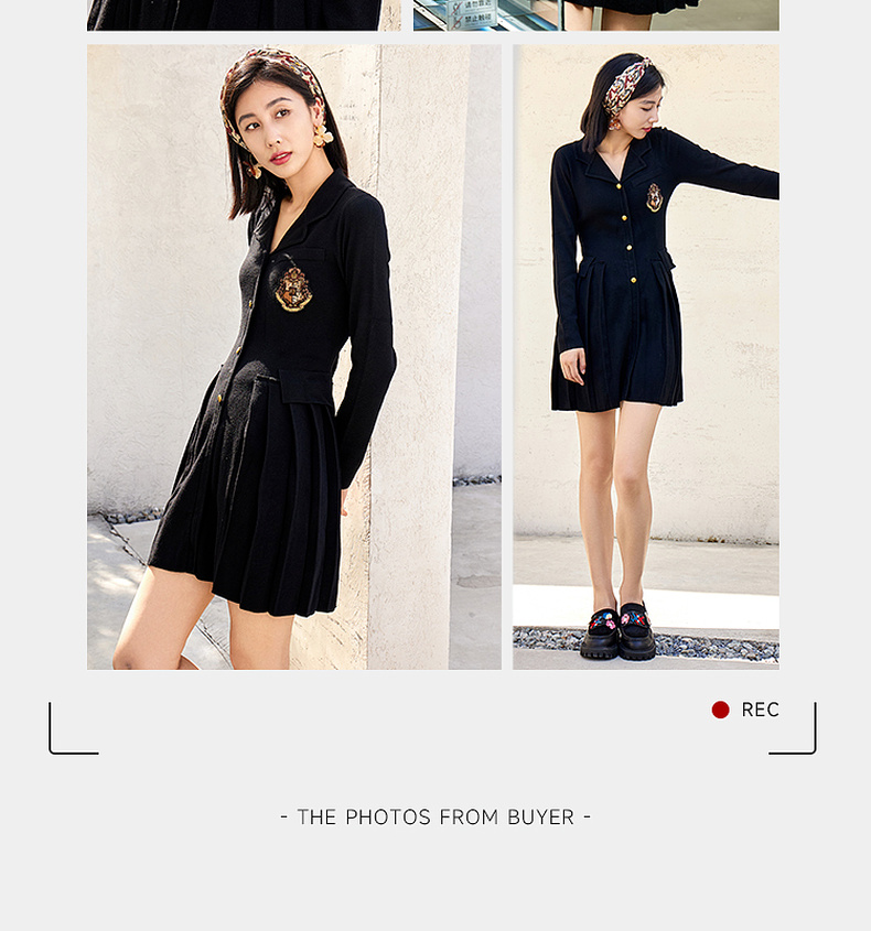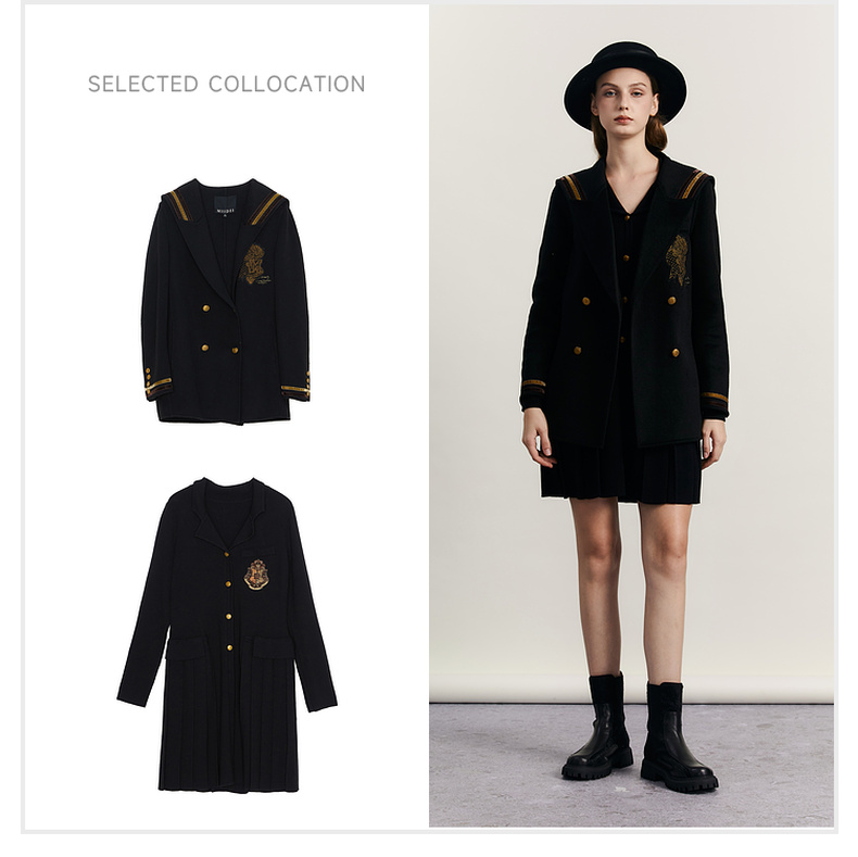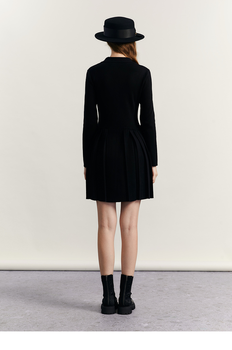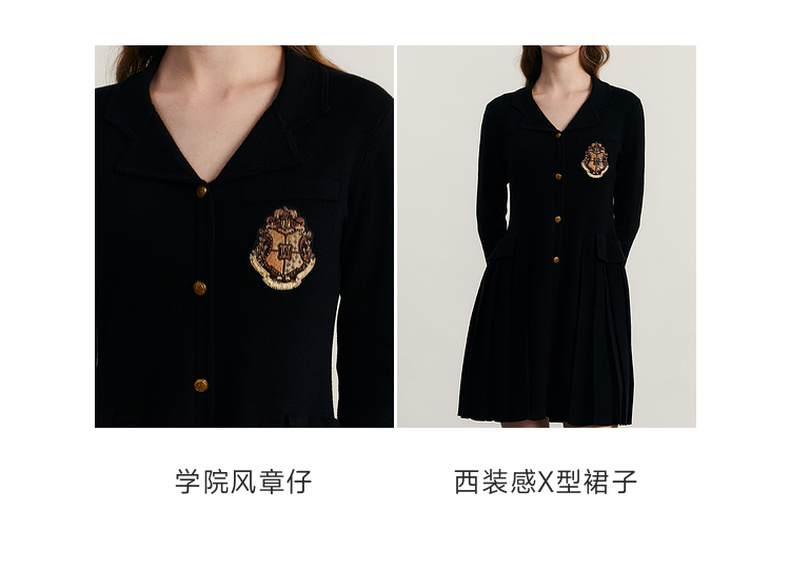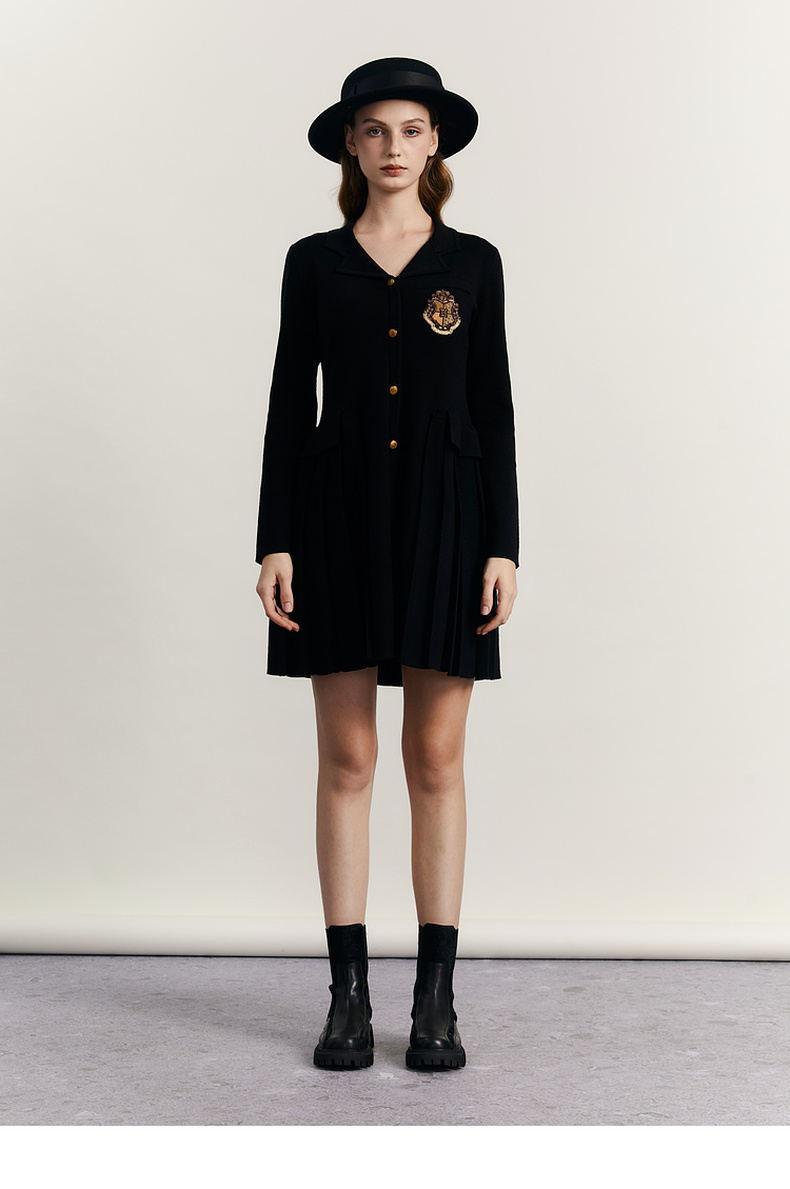 谜底针织连衣裙女2023冬新品英伦风时尚刺绣修身中长裙234MZ1857