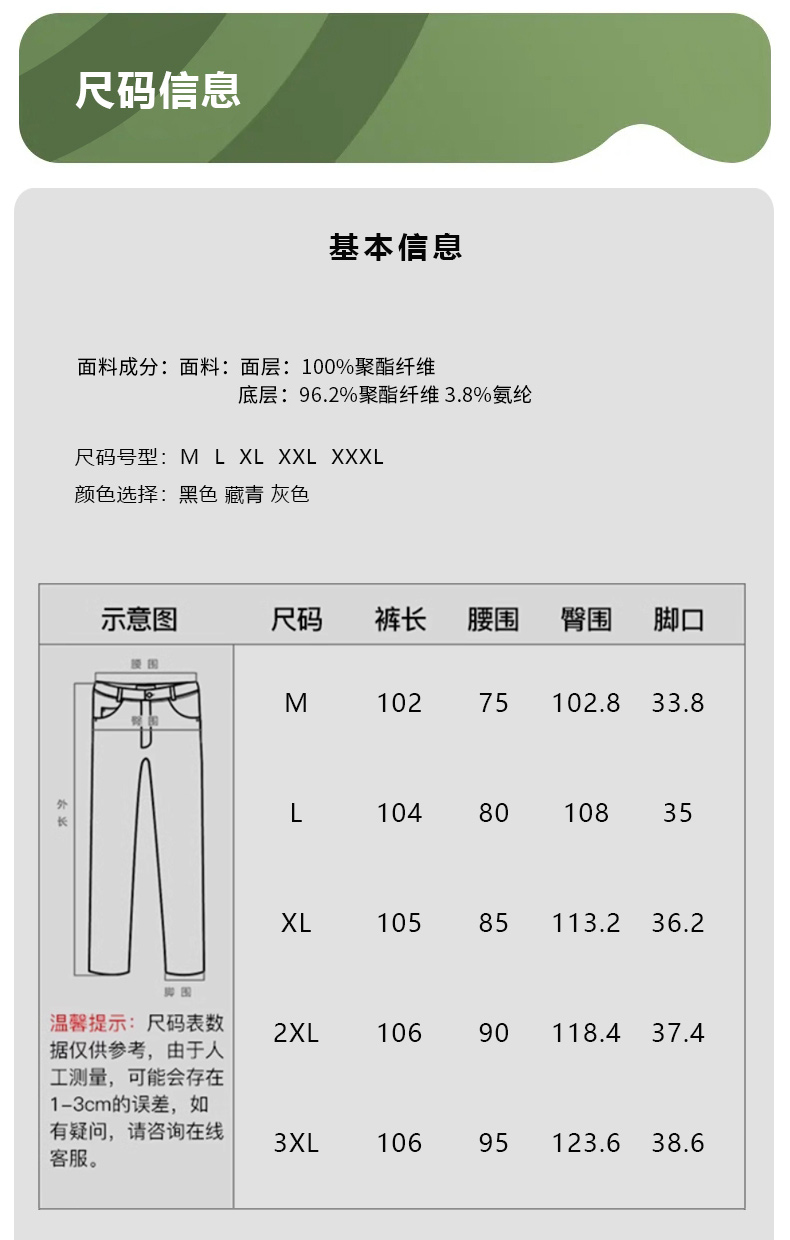 面料:面层:100%聚酯纤维 底层:96.2%聚酯纤维 3.8%氨纶(含胶)