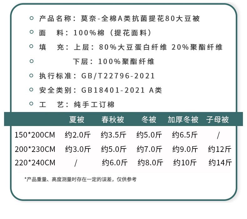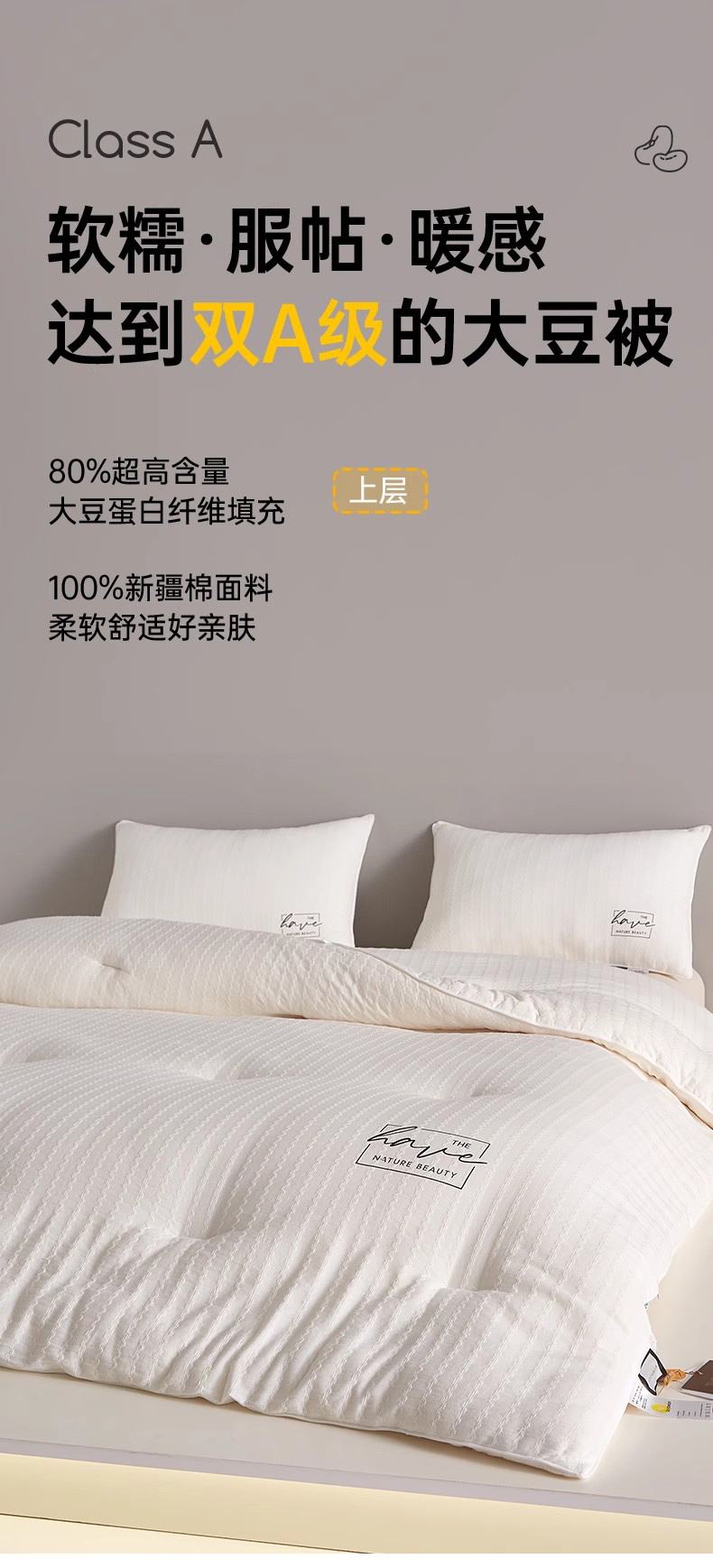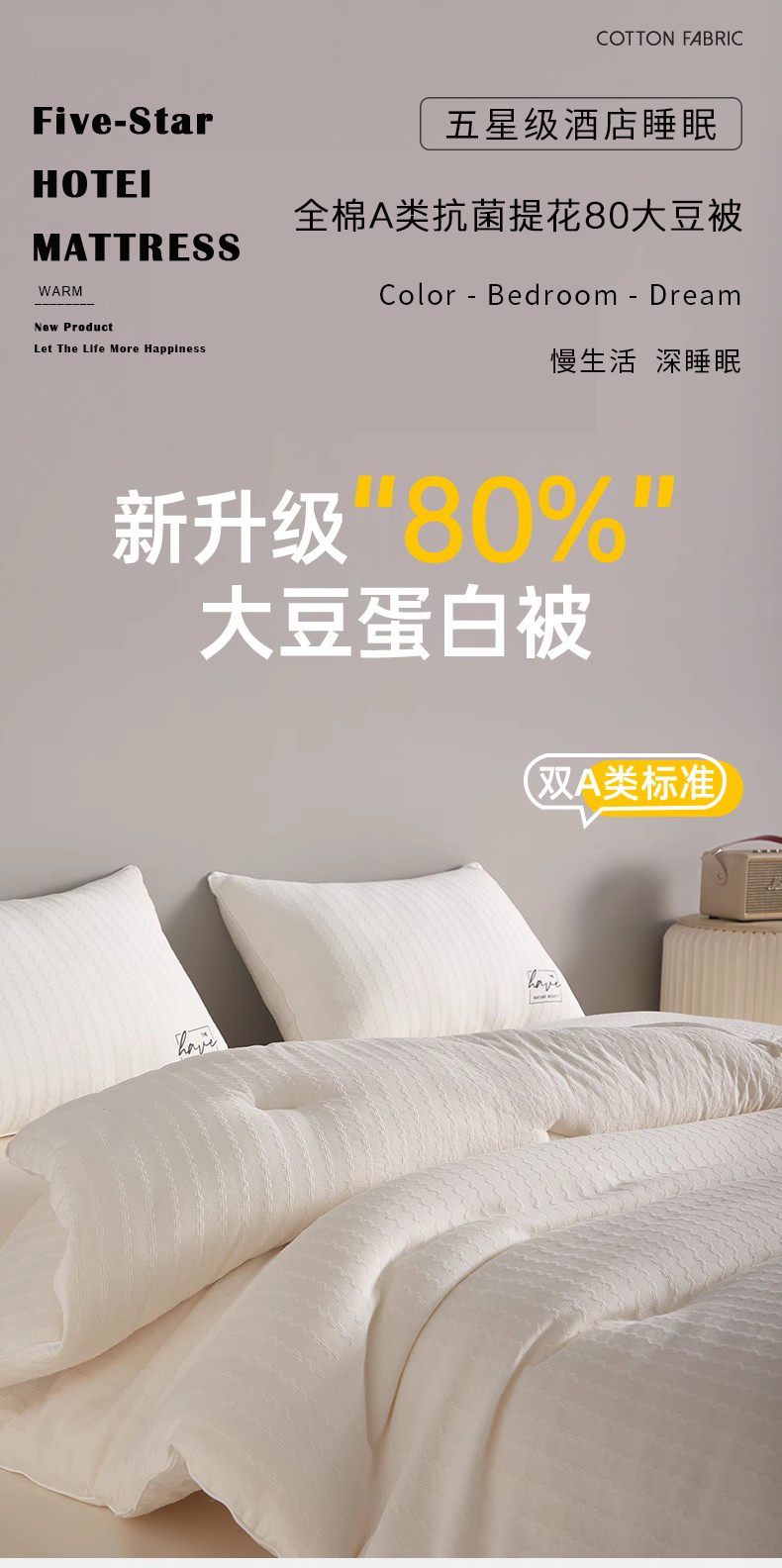 自然醒莫奈全棉提花80大豆子母被芯高端双A类抗菌纯棉华夫格80%大豆蛋白春秋被四季通用加厚冬被FM