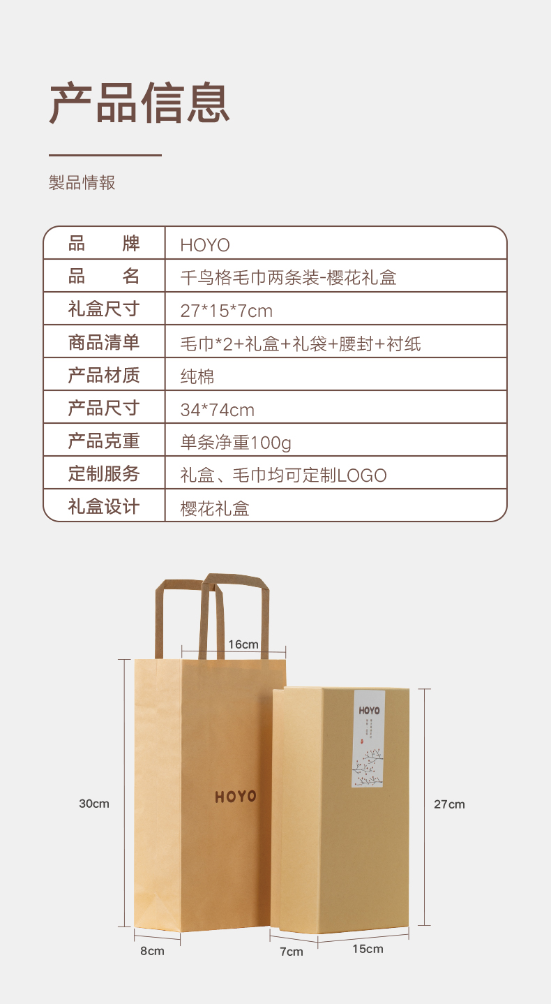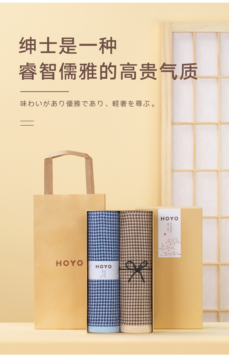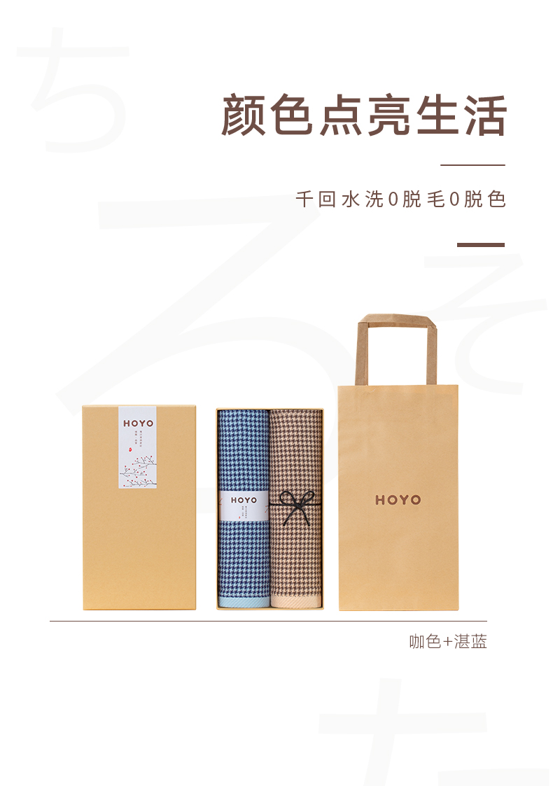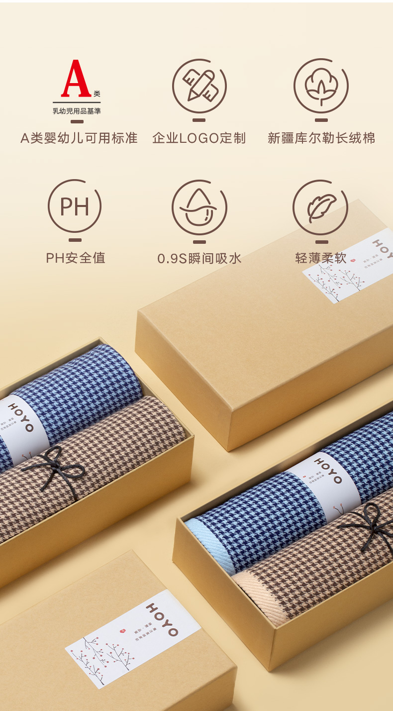 HOYO厚祐 千鸟格毛巾双条装礼盒