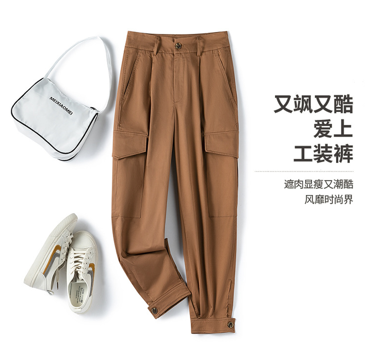 酷飒女生怎么少得了工装裤的点缀?日单,轻薄面料工装裤,时髦和品质同时在线。挺括有型,上身随意搭配T恤或者套头衫都比日常的裤子要有型。