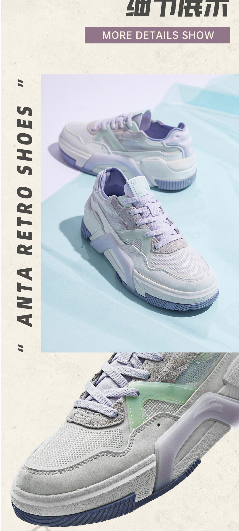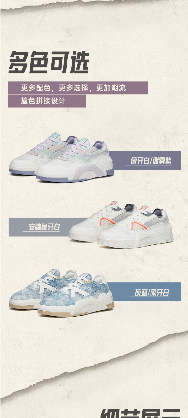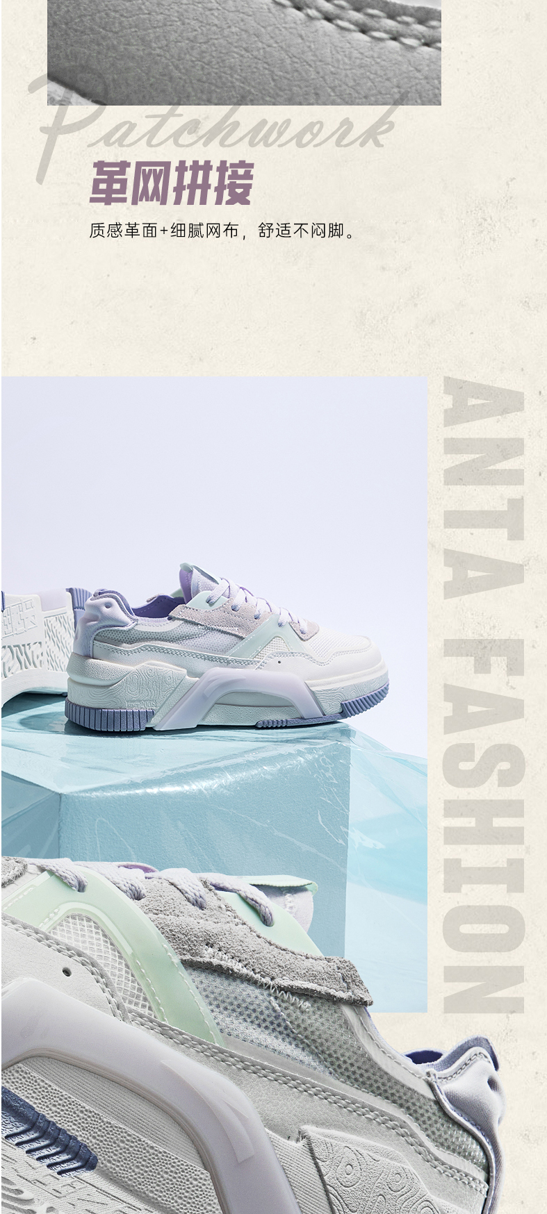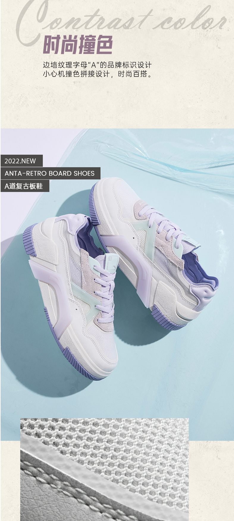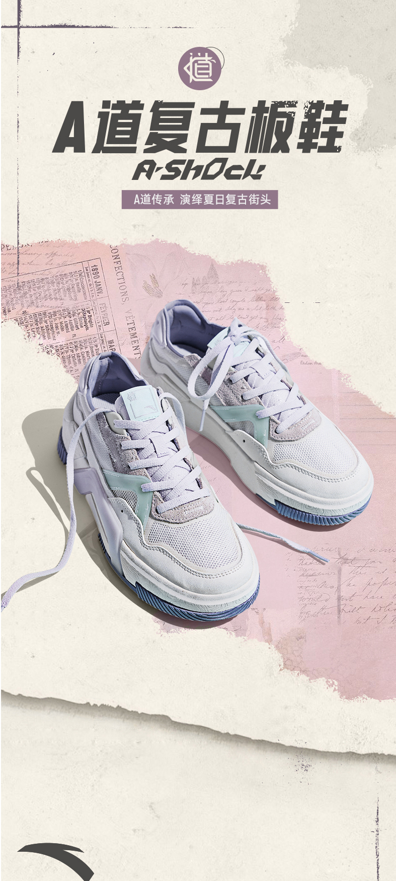 安踏A道板鞋女鞋2022新款低帮厚底复古运动鞋子潮休闲鞋122228071-3