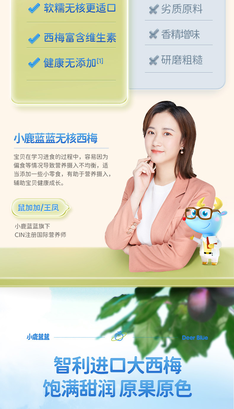 - 小鹿蓝蓝始终致力于为主人提供更优质、高性价比的产品、服务和体验,共同打造婴童零食生态圈,提升母婴行业的国货自信,守护和陪伴新一代儿童健康、快乐地成长。