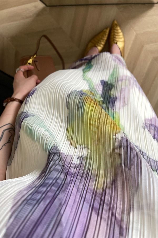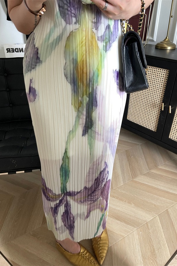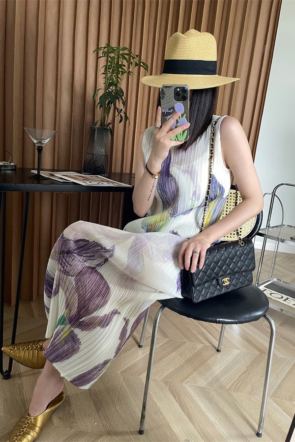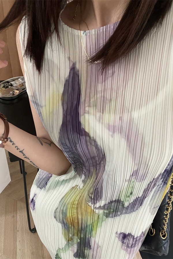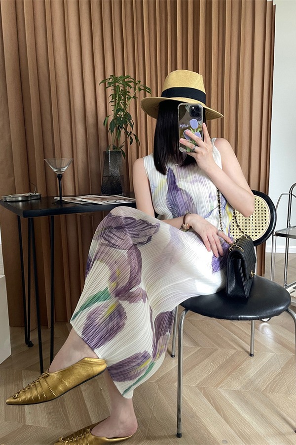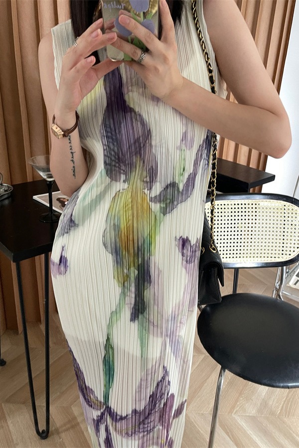 ANSUABEL 三宅花朵印花无袖褶皱连衣裙 18361