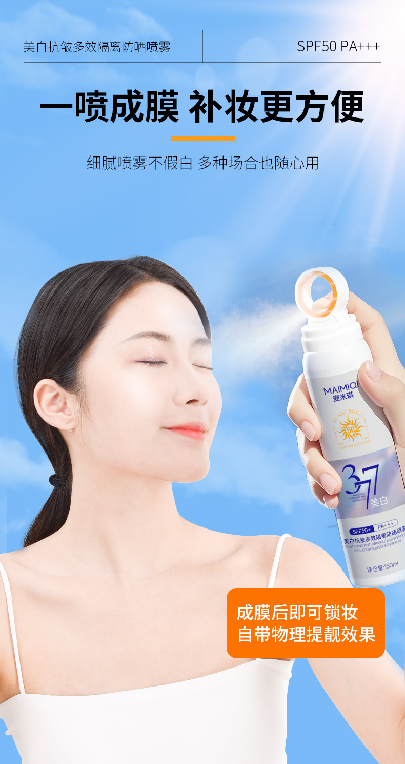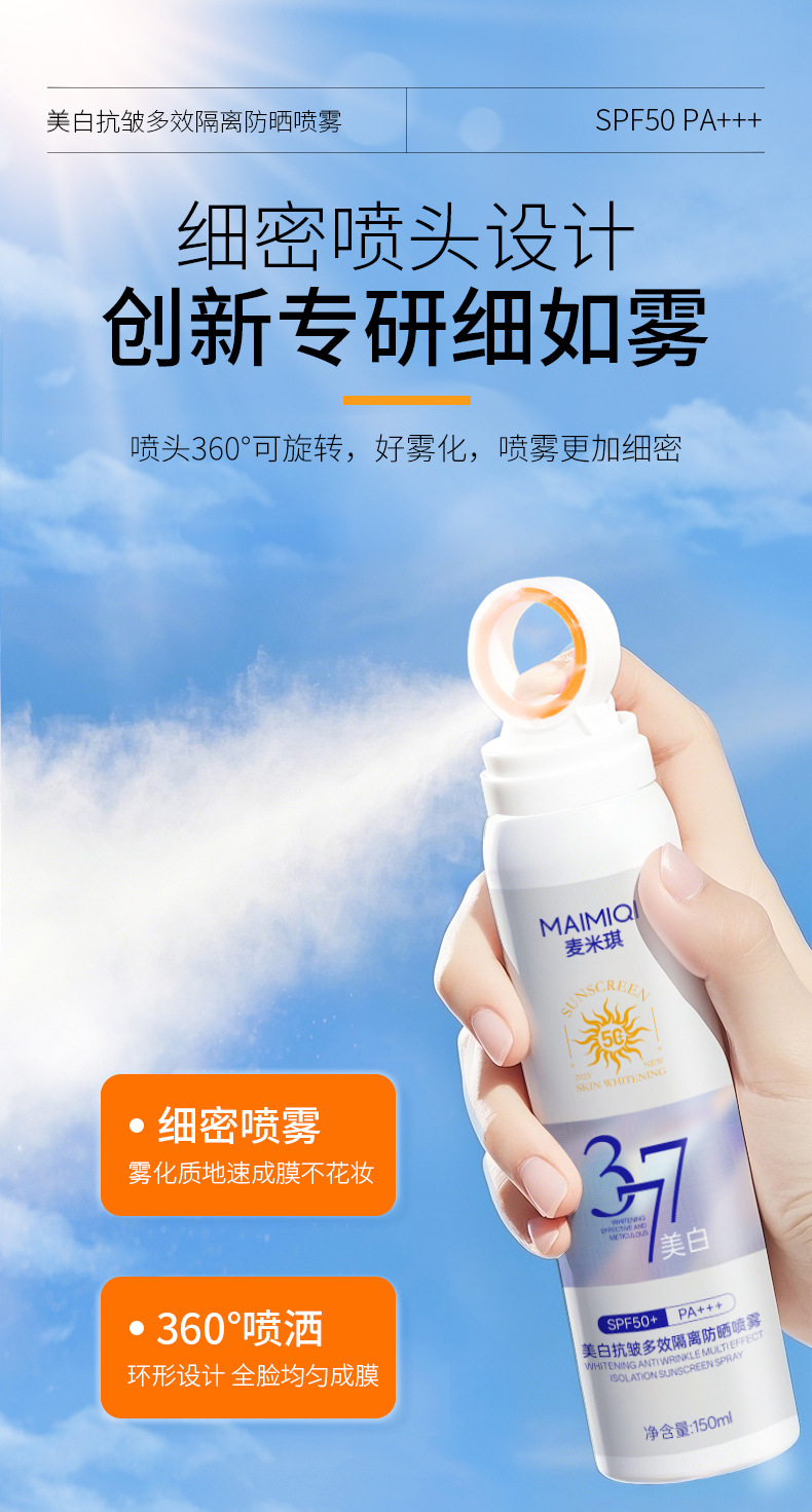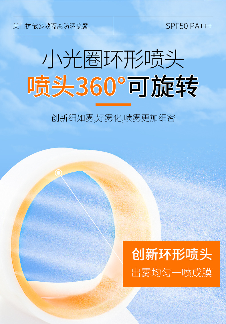 【晒不黑!妆不花】小光圈防晒喷雾剂 SPF50防晒防紫外线 377美白防晒喷雾高倍防水防汗