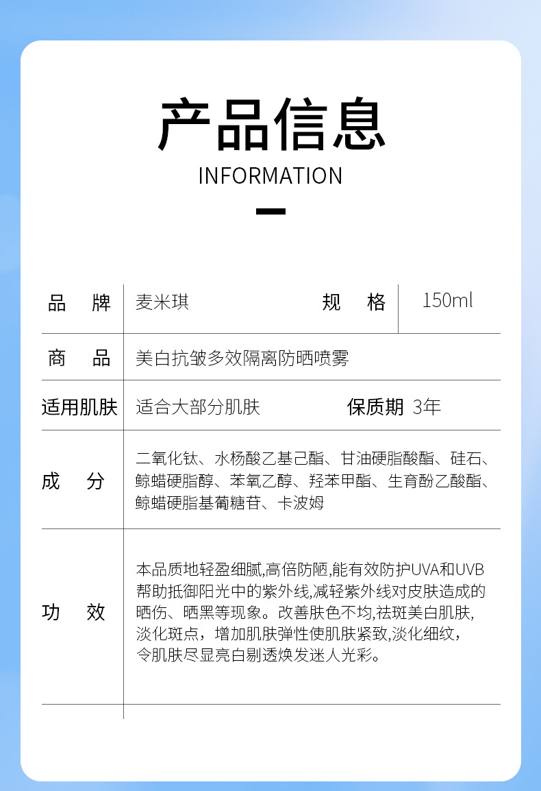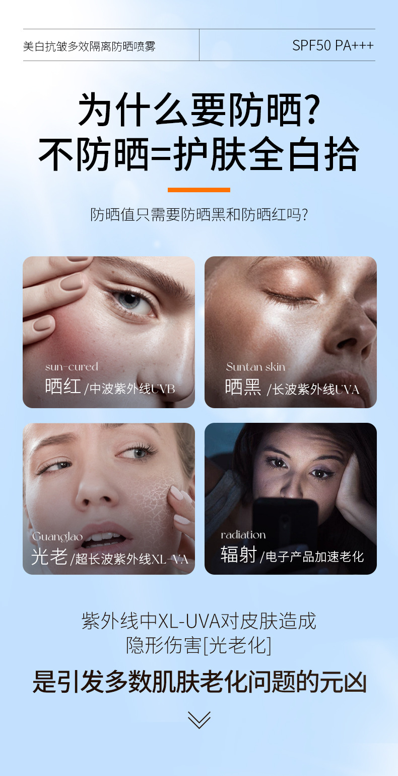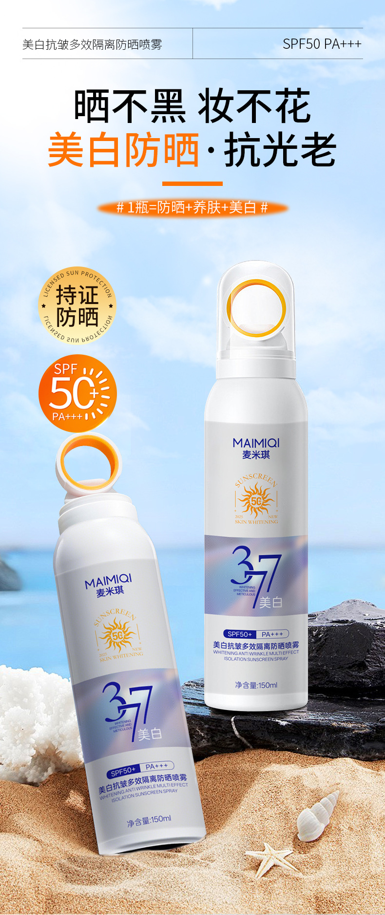 【晒不黑!妆不花】小光圈防晒喷雾剂 SPF50防晒防紫外线 377美白防晒喷雾高倍防水防汗