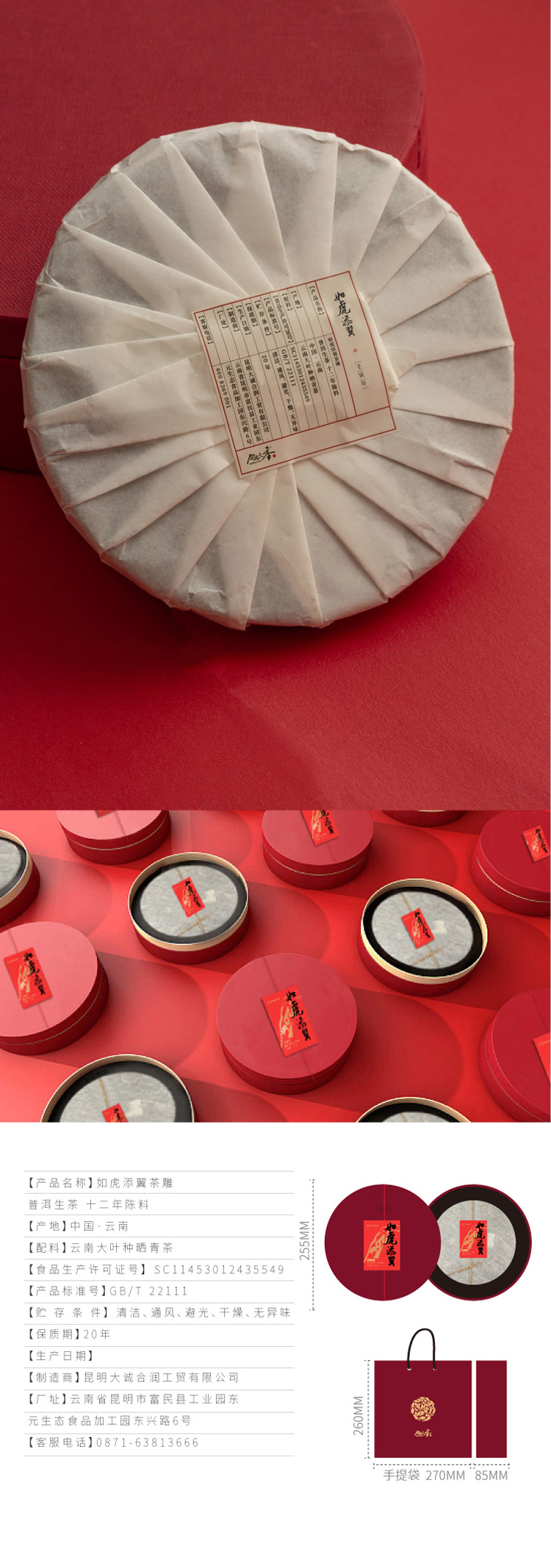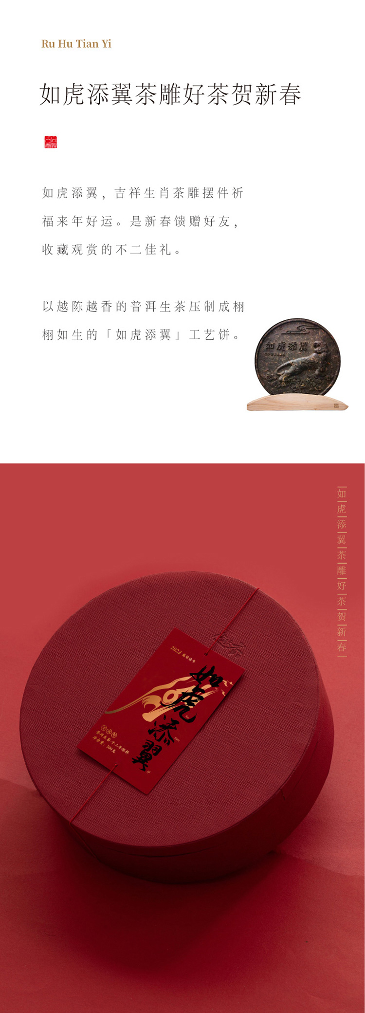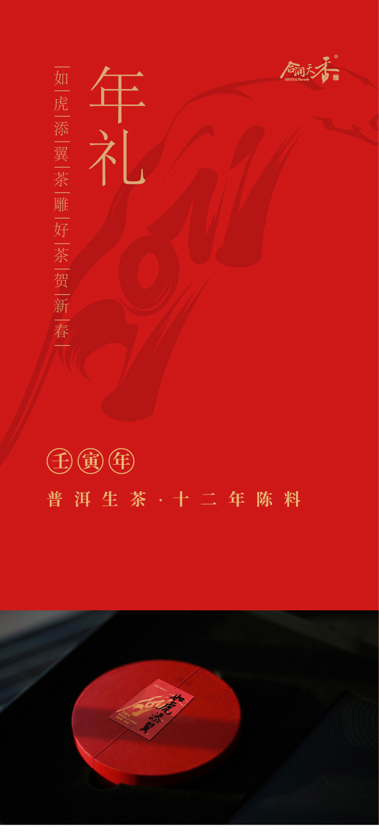 【新春生肖限量真诚茶】合润天香 如虎添翼款 十二年陈普洱生茶 雕红礼盒装 500g/盒(天猫同款)