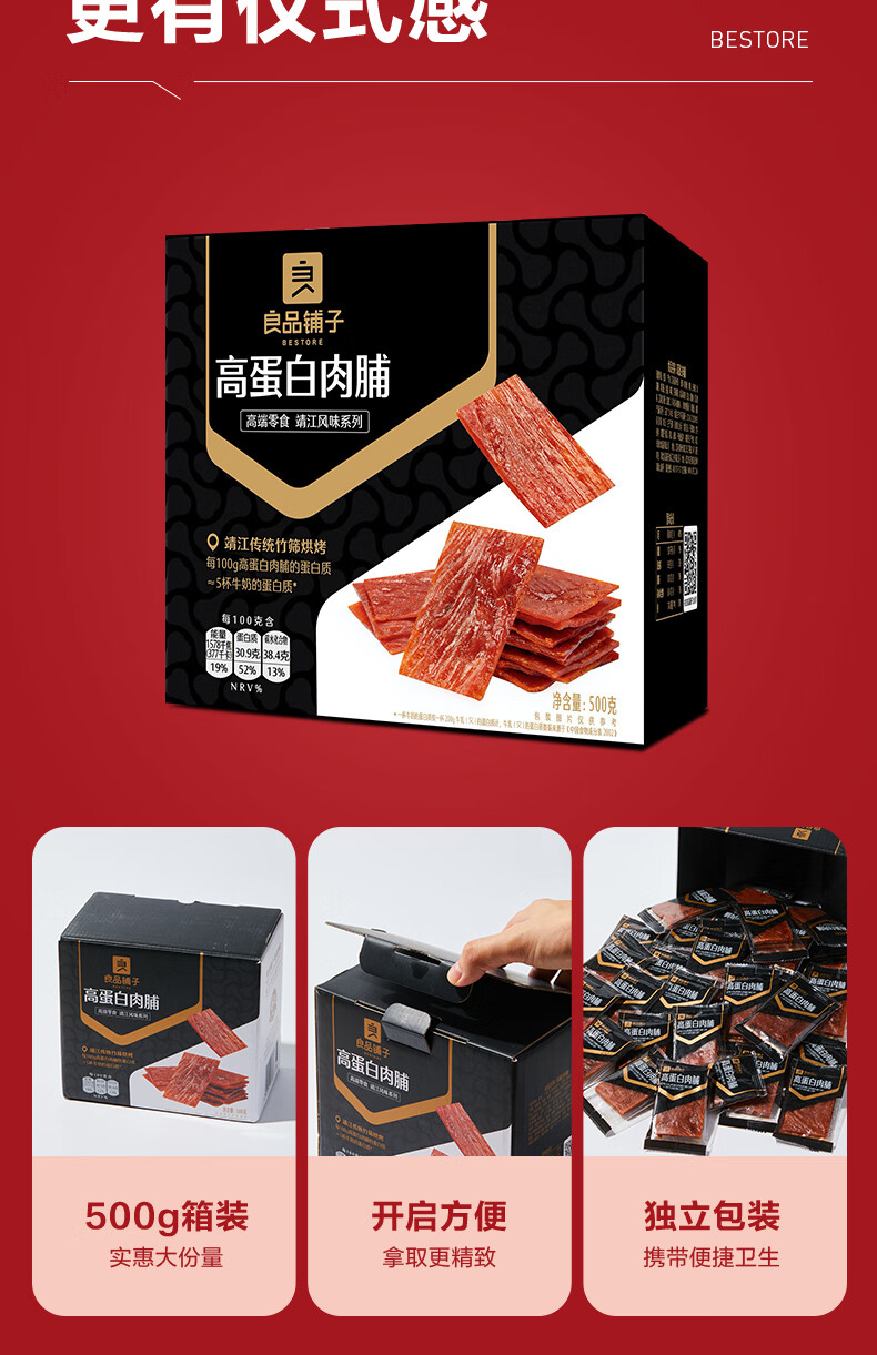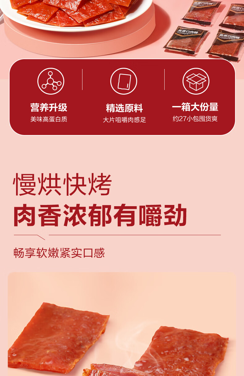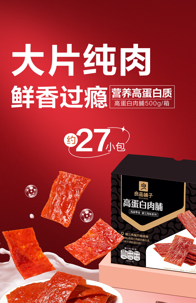 良品铺子 高蛋白肉脯原味500g约27包猪肉脯肉干肉脯高蛋白休闲零食量贩装 100024065174