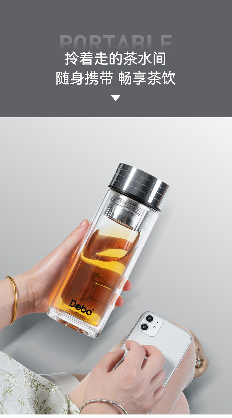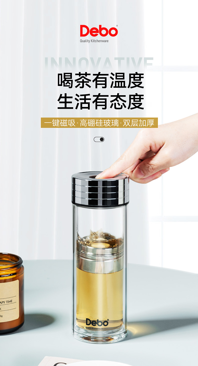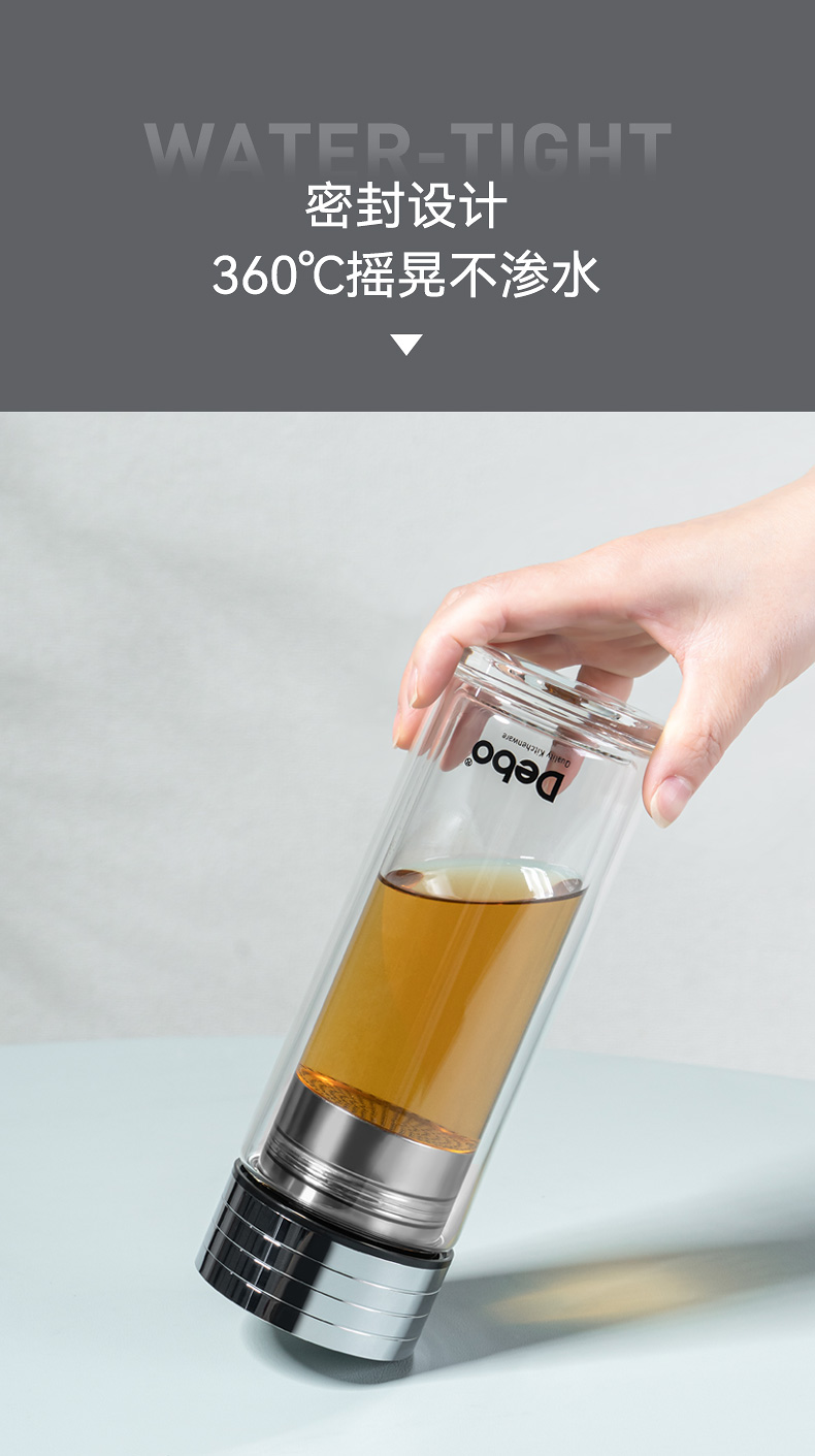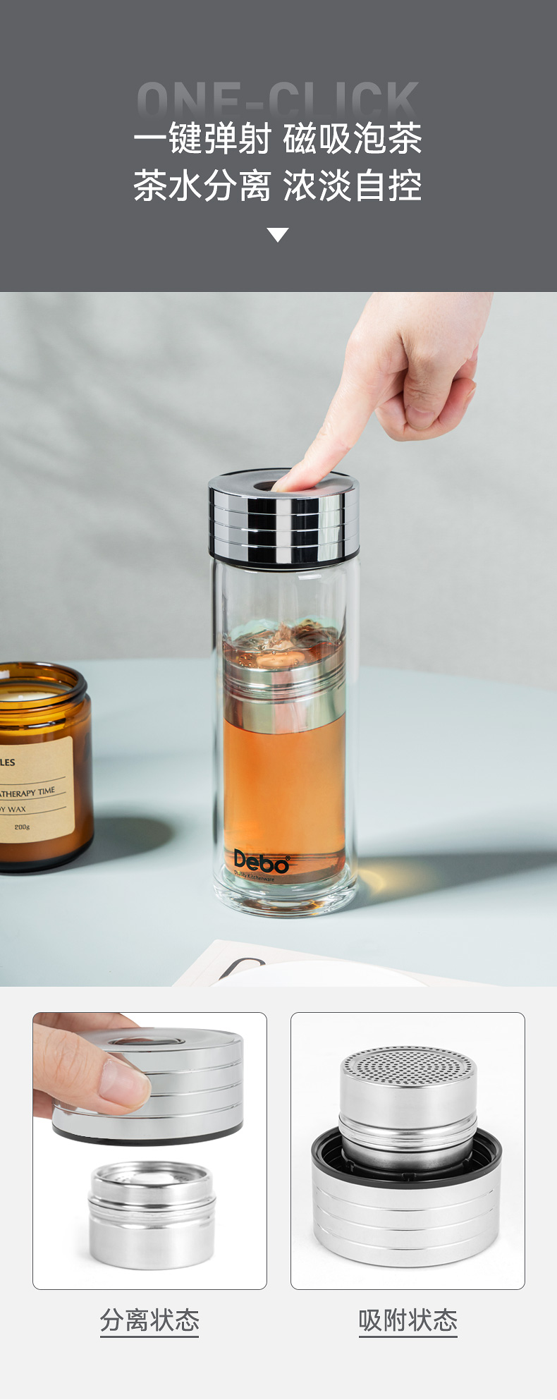 Debo德铂-阿隆索磁吸玻璃杯350ml 商务儒雅大气玻璃杯 一键按压开关磁吸设计可控泡茶浓淡