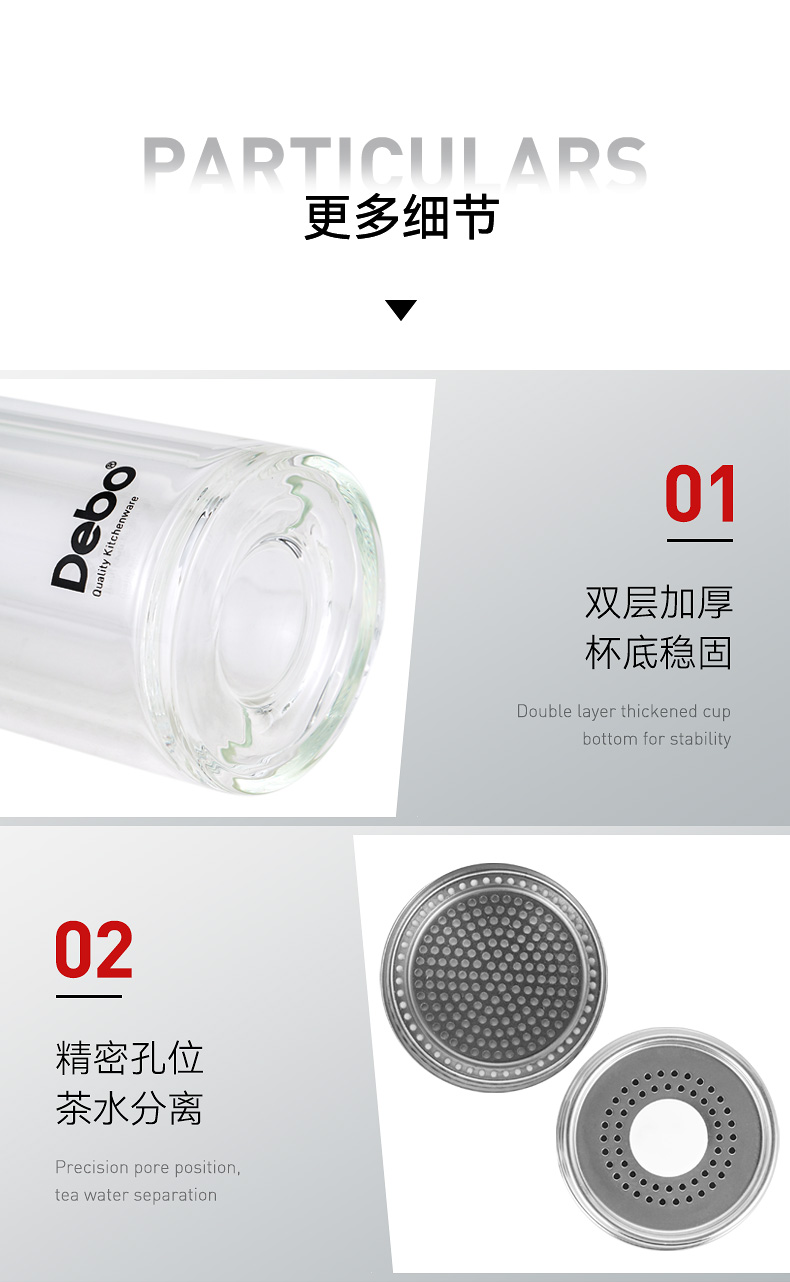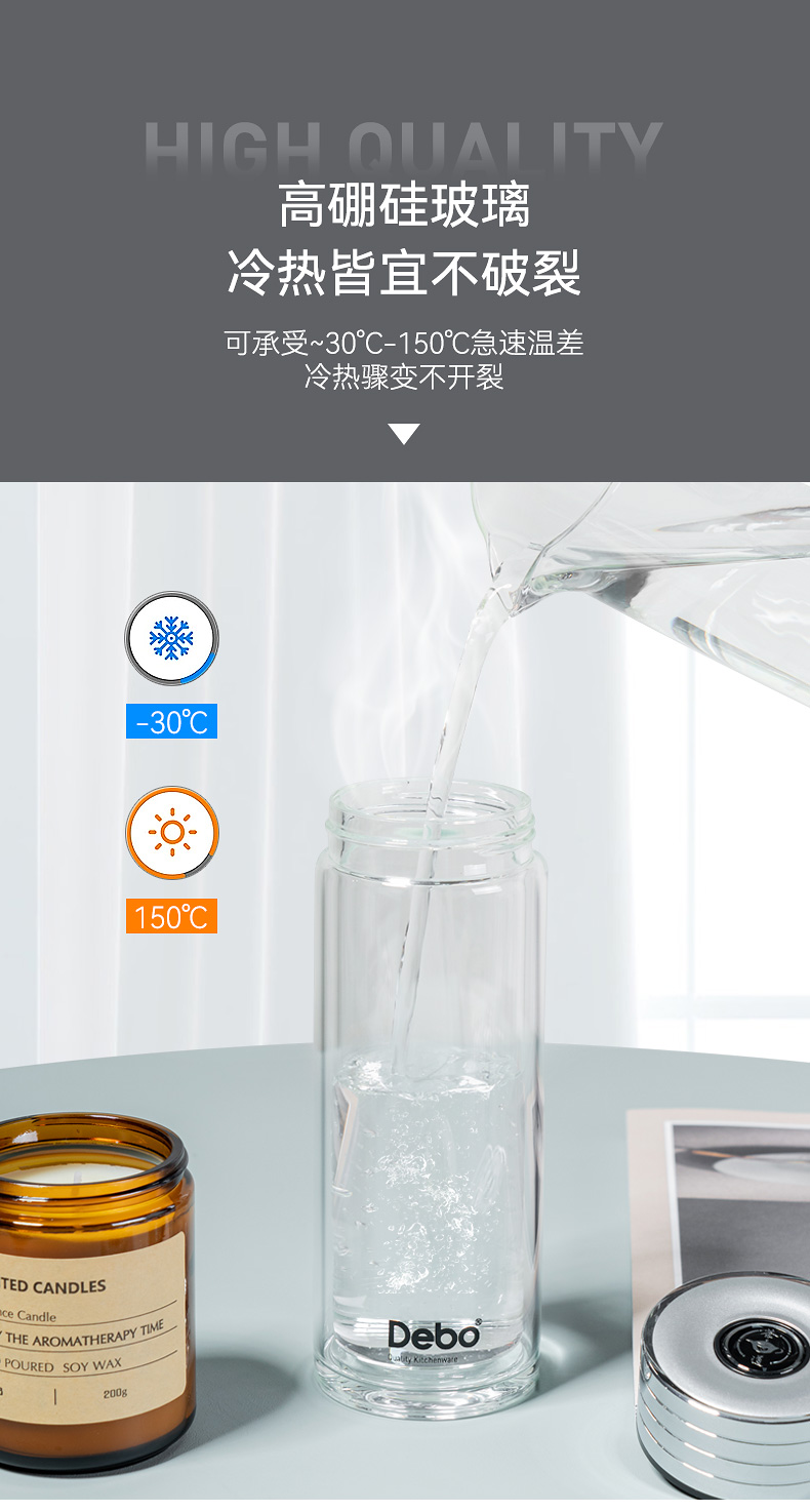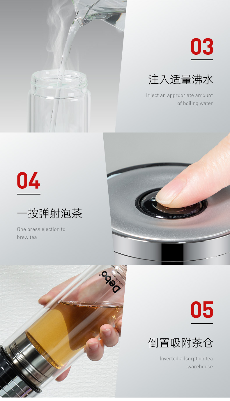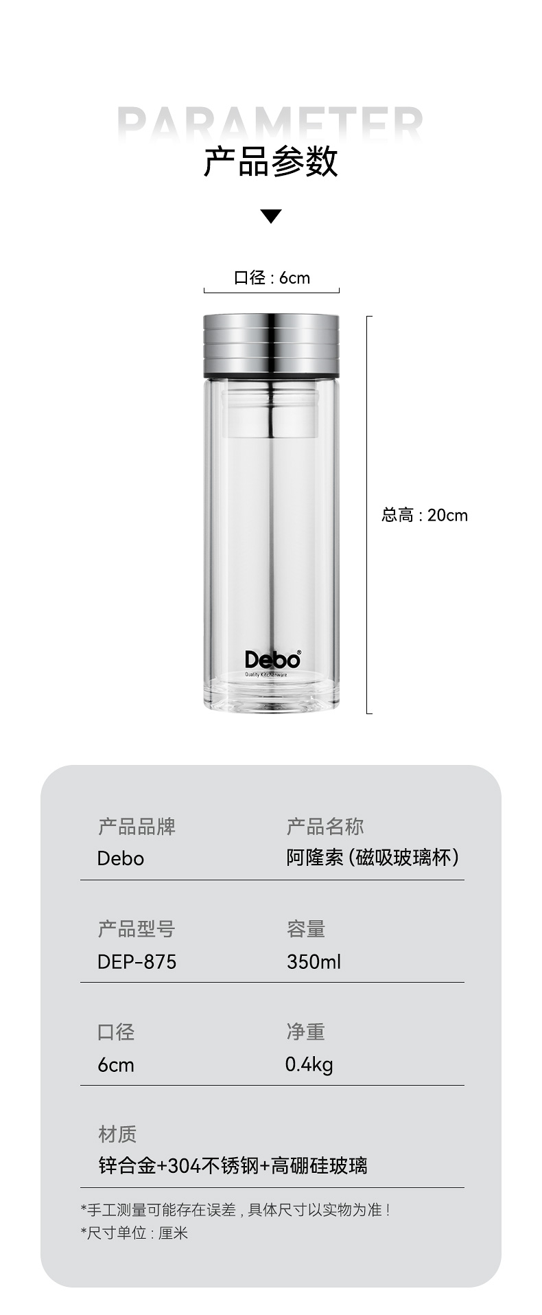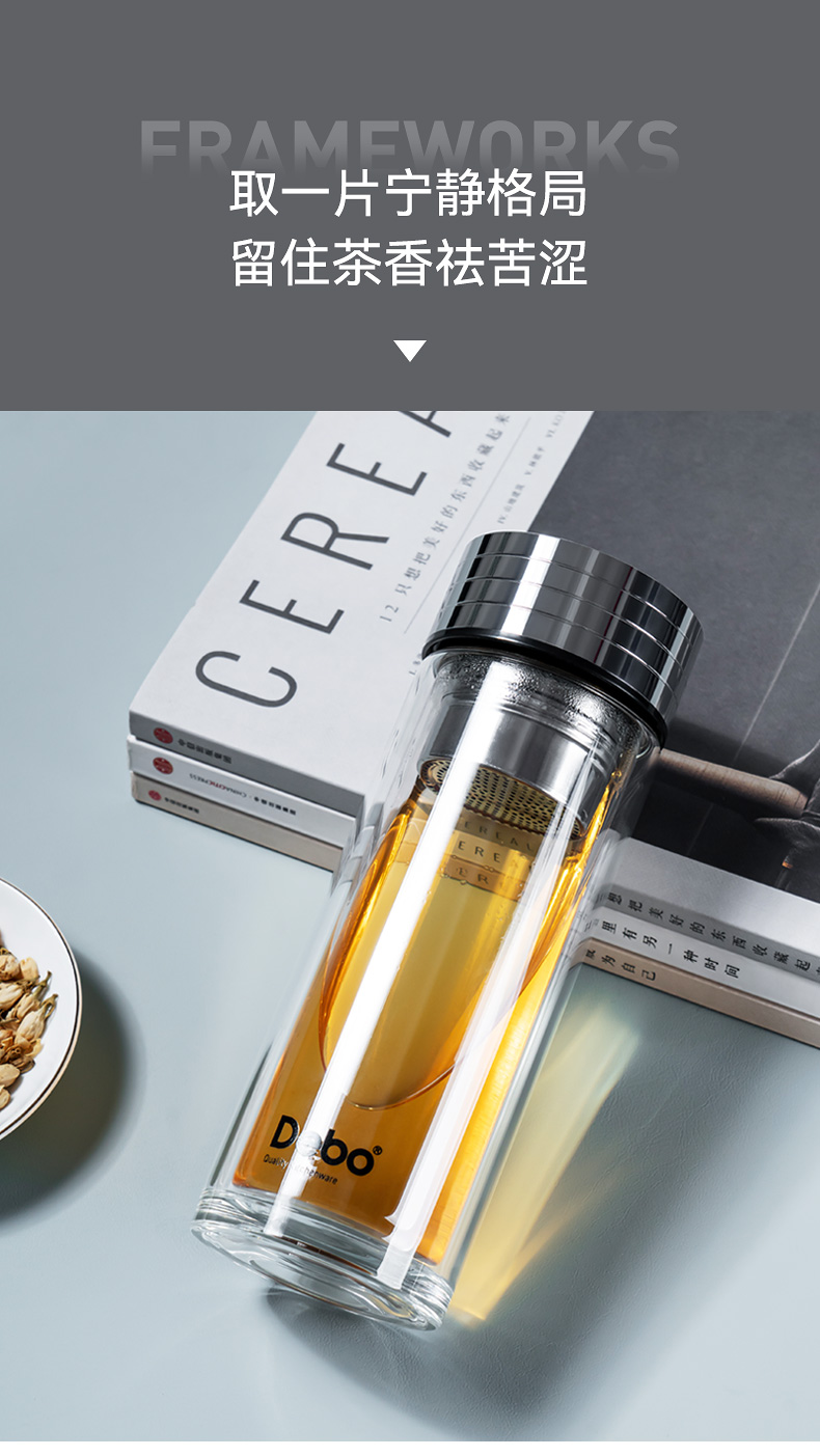 Debo德铂-阿隆索磁吸玻璃杯350ml 商务儒雅大气玻璃杯 一键按压开关磁吸设计可控泡茶浓淡