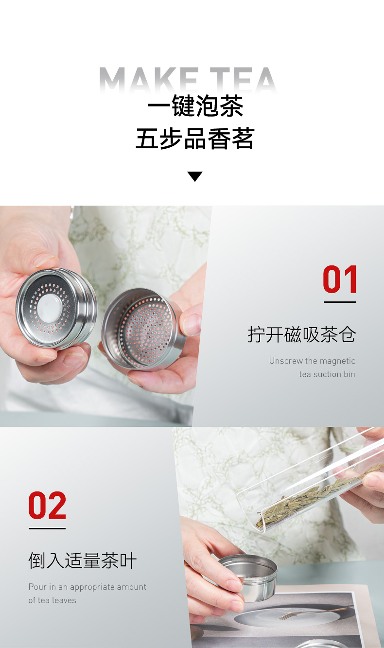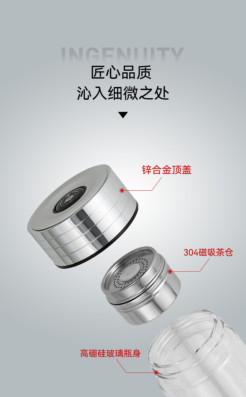 配置:杯身*1、磁吸茶仓*1、盖子*1
