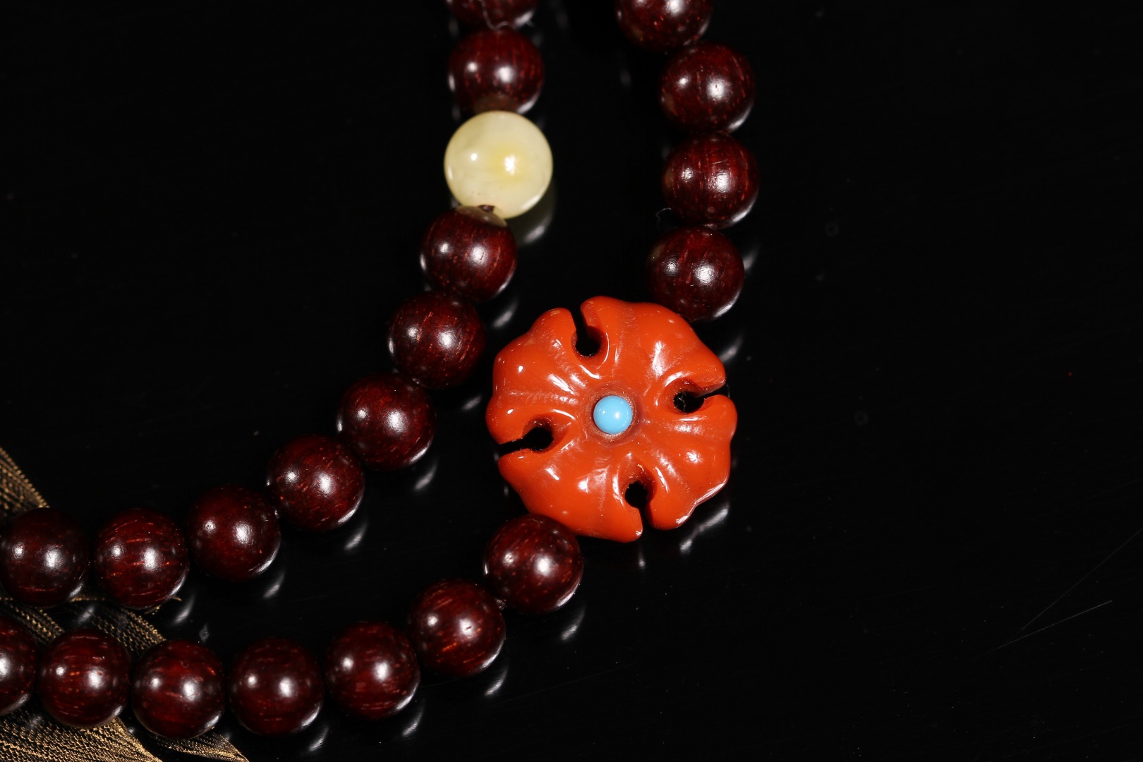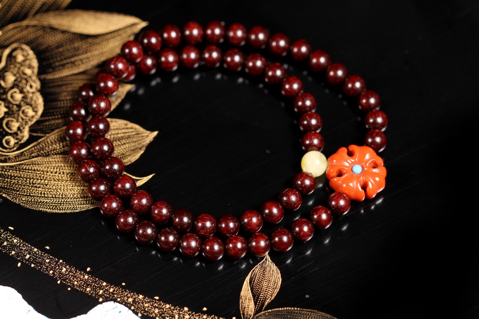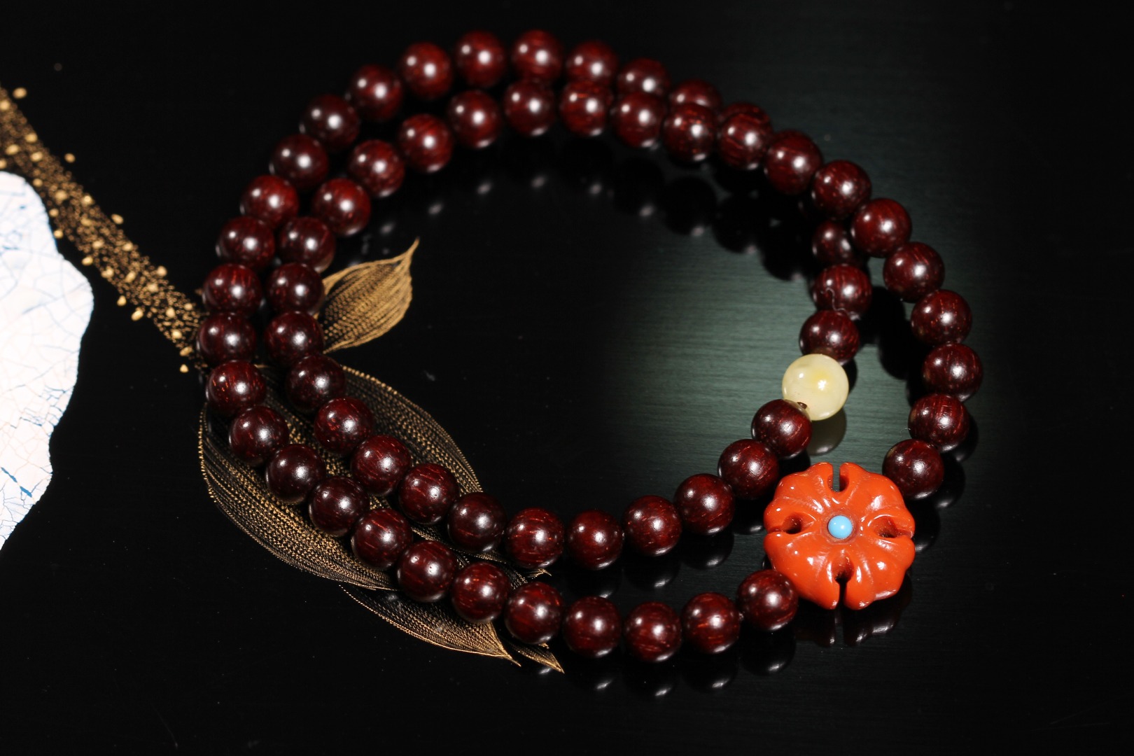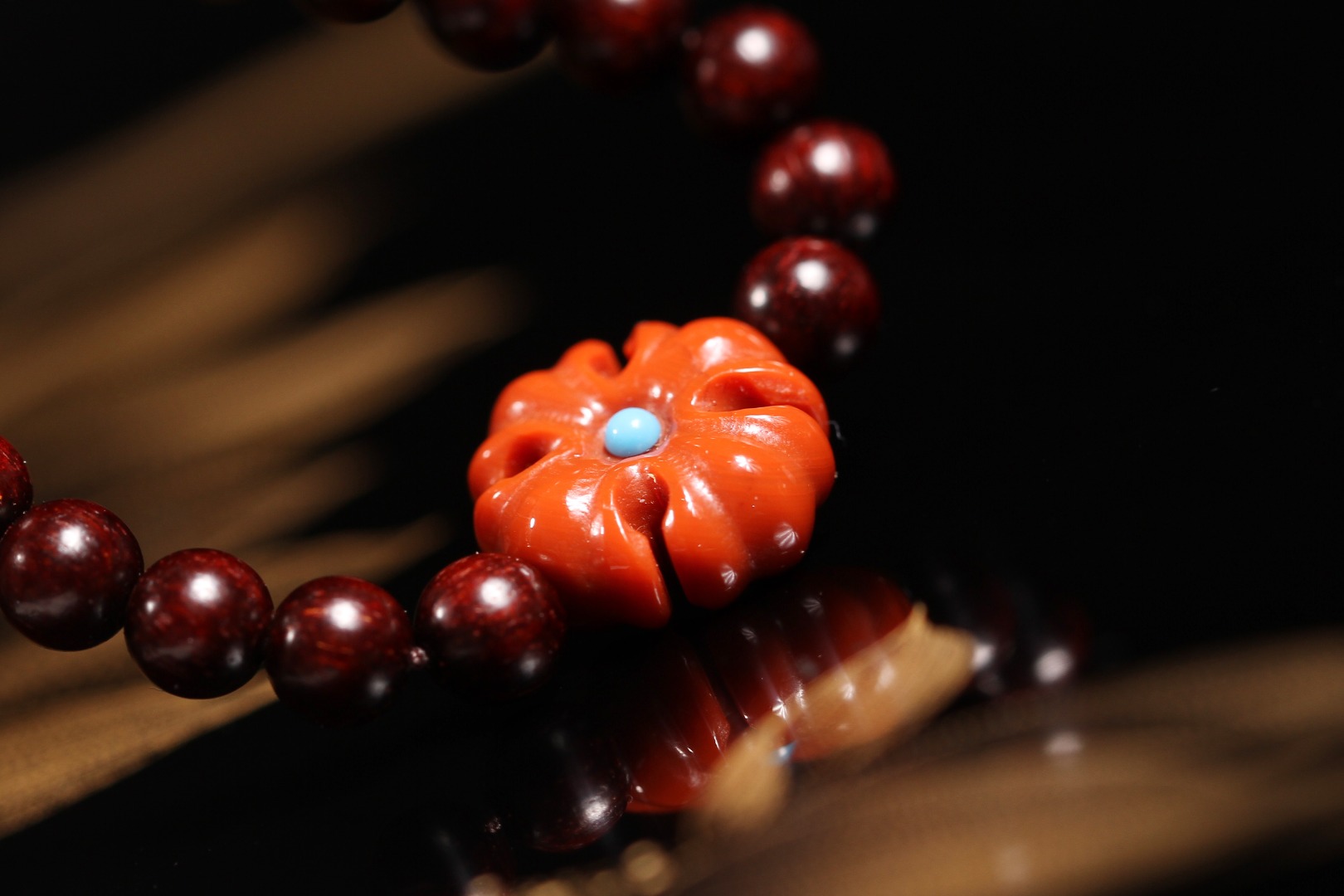 【南红·克罗心】采用0.5规格紫檀进行创作,氧化通透,瓷质光泽,搭配南红克罗心形状,兼具粗旷与精细之感,略带夸张与神秘,也许粗略地看并不能一眼抓住其中之美,但慢慢欣赏,并会迷上这种中性简约风。