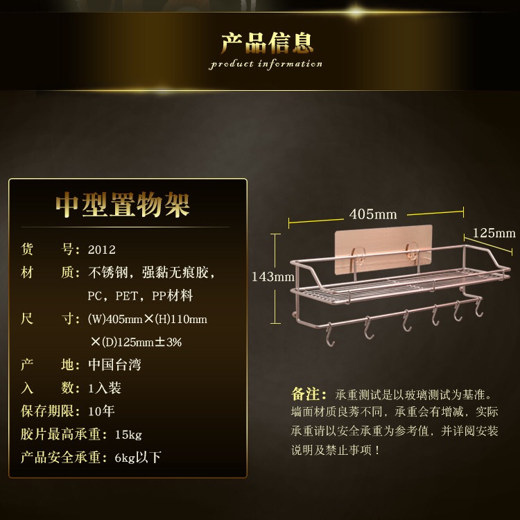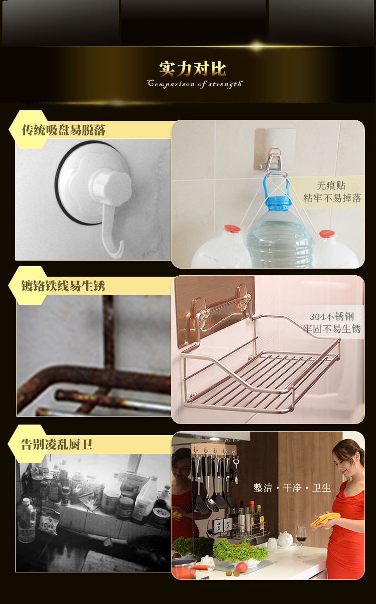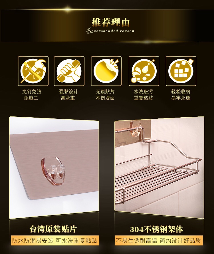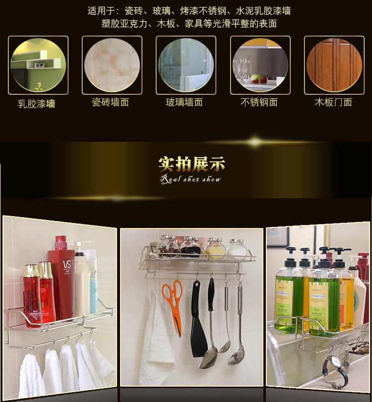 【清仓特惠3折】中型置物架日用品强力无痕浴室厨房整理架置物架收纳架不锈钢