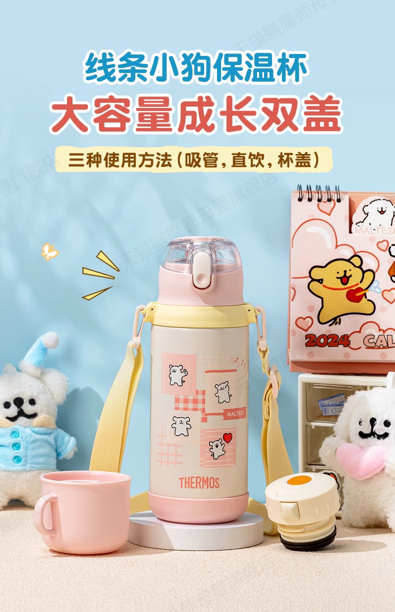膳魔师不锈钢保温杯保冷吸管杯线条小狗系列TCK-GG 500ml【不支持补差,非质量问题不退不换】S